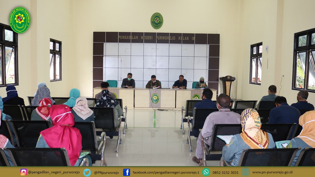 Dengan tetap menjalankan protokol kesehatan pencegahan penyebaran COVID-19 Pengadilan Negeri Purworejo mengadakan Rapat Bulanan untuk Bulan JuniTahun 2020