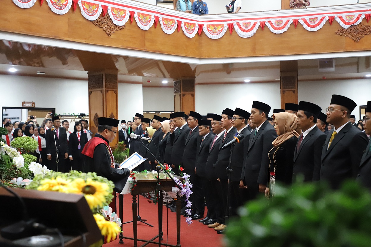 Semarang, 2 Agusus 2024. Bertempat di Aula Lantai 2 Pengadilan Tinggi Semarang digelar Sidang Luar Biasa Pengambilan Sumpah, Pelantikan dan Serah Terima Jabatan Ketua Pengadilan Negeri Purworejo dari Purnomo Hadiyarto, S.H. Kepada R HEDDY BELLYANDI, S.H., M.H., Ketua Pengadilan Negeri Brebes dari Dr. Dedy Muchti Nugroho, S.H., M.Hum kepada Erica Mardaleni, S.H., M.H., Ketua Pengadilan Negeri Jepara Rightmen MS Situmorang, S.H., M.H. kepada Erven Langgeng Kaseh, S.H., M.H. dan Ketua Pengadilan Negeri Rembang Muhamad Baginda Rajoko Harahap, S.H., M.H. kepada Liena, S.H., M.H.