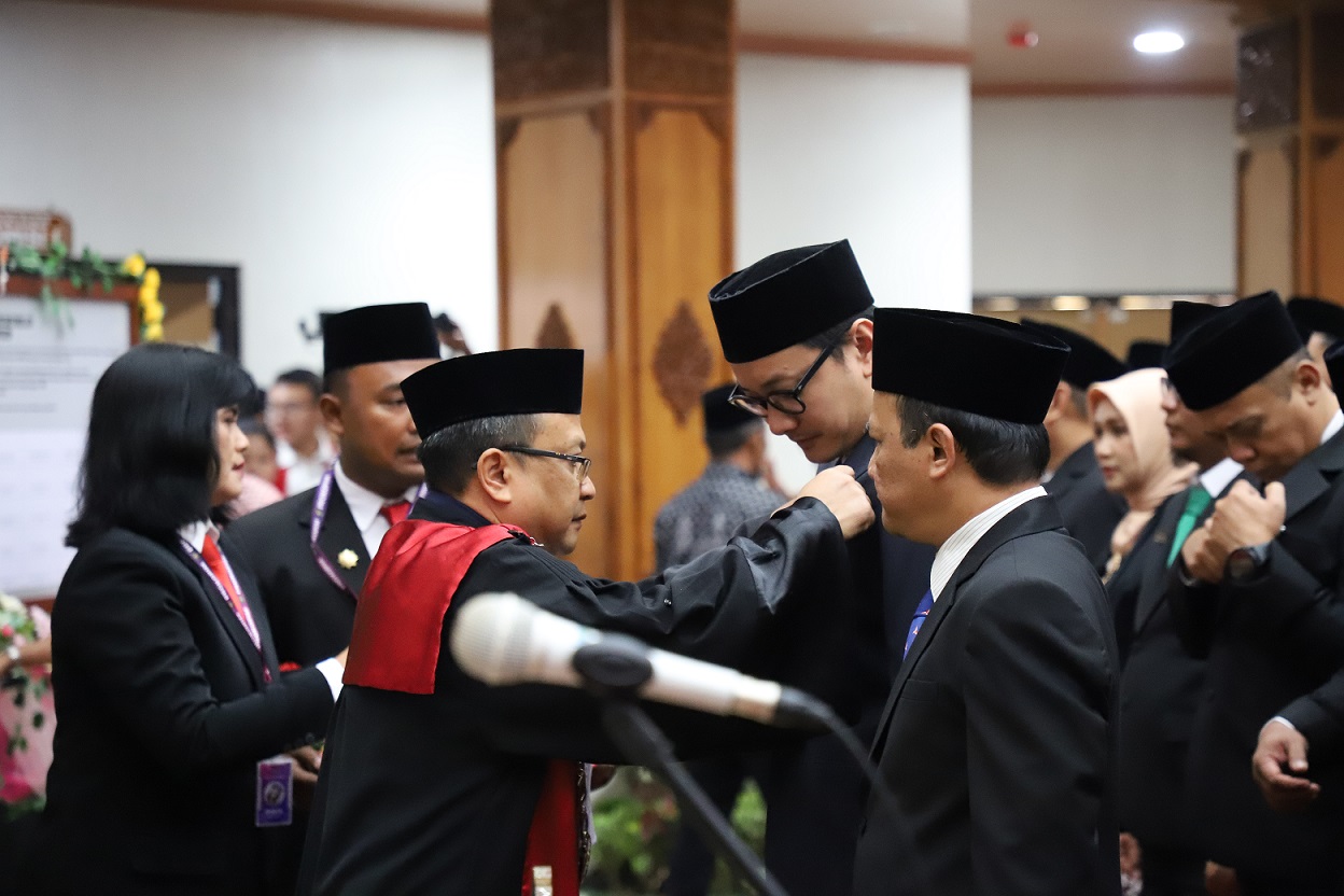 Acara dipimpin langsung oleh Ketua Pengadilan Tinggi Semarang, H. Charis Mardiyanto, S.H., M.H. Dalam sambutannya Ketua Pengadilan Tinggi Semarang mengucapkan selamat kepada pejabat yang dilantik dan berpesan untuk menjadi pimpinan pengadilan harus mempunyai 3 faktor yang penting, antara lain :