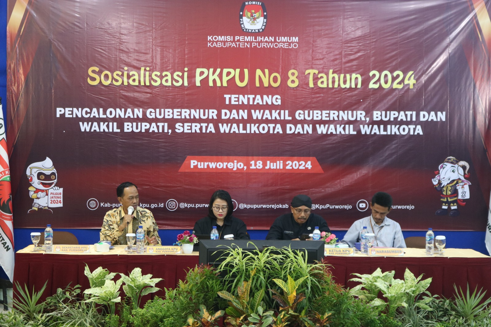 Purworejo – Kamis, 18 Juli 2024. Ketua Pengadilan Negeri Purworejo Bapak Purnomo Hadiyarto, S.H. menjadi Narasumber pada Kegiatan Sosialisasi PKPU No 8 Tahun 2024 Tentang Pencalonan Gubernur dan Wakil Gubernur, Bupati dan Wakil Bupati, serta Walikota dan Wakil Walikota.