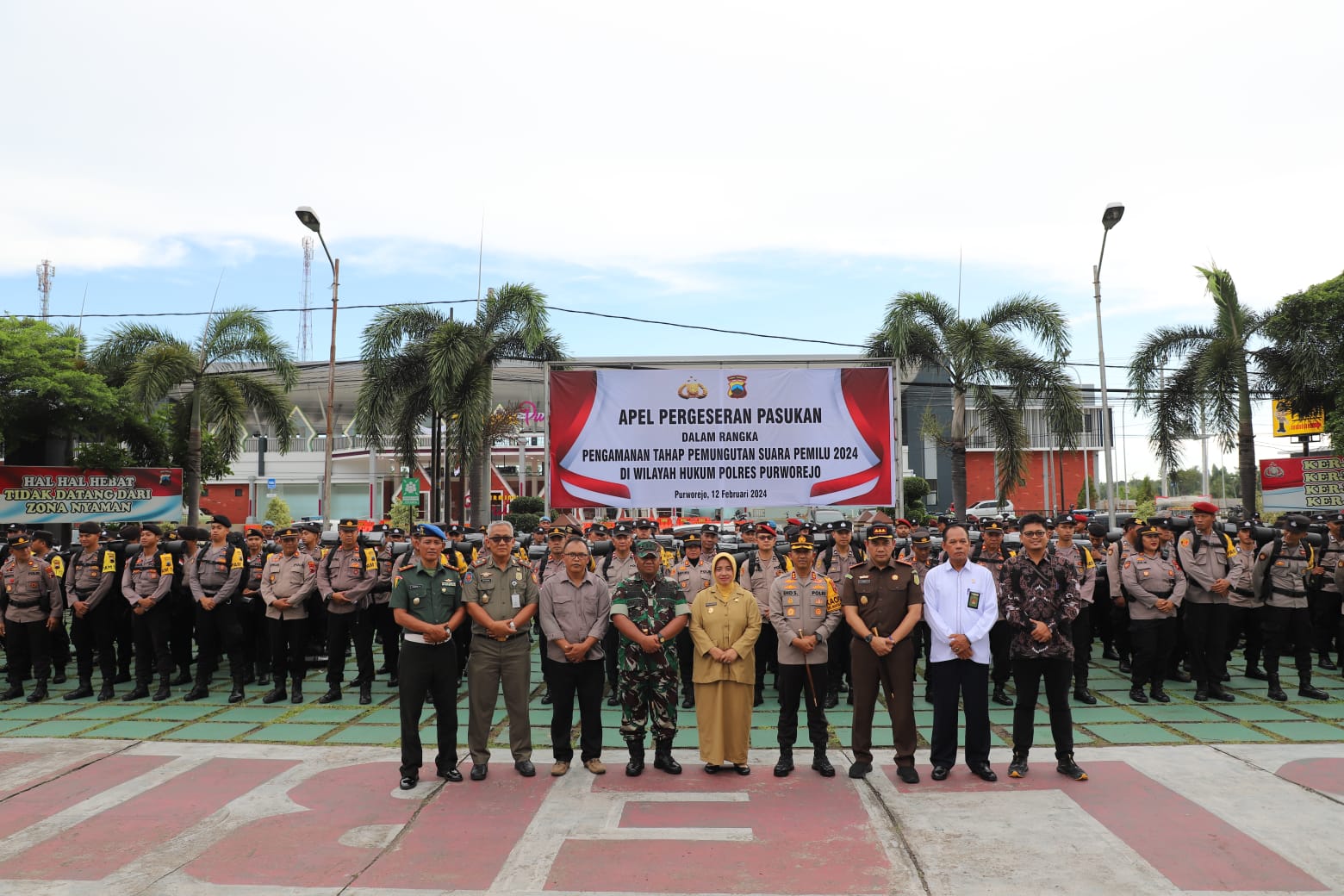 Apel Pergeseran Pasukan Dalam Rangka Pengamanan Tahap Pemungutan Suara Pemilu 2024 Di Wilayah Hukum Polres Purworejo