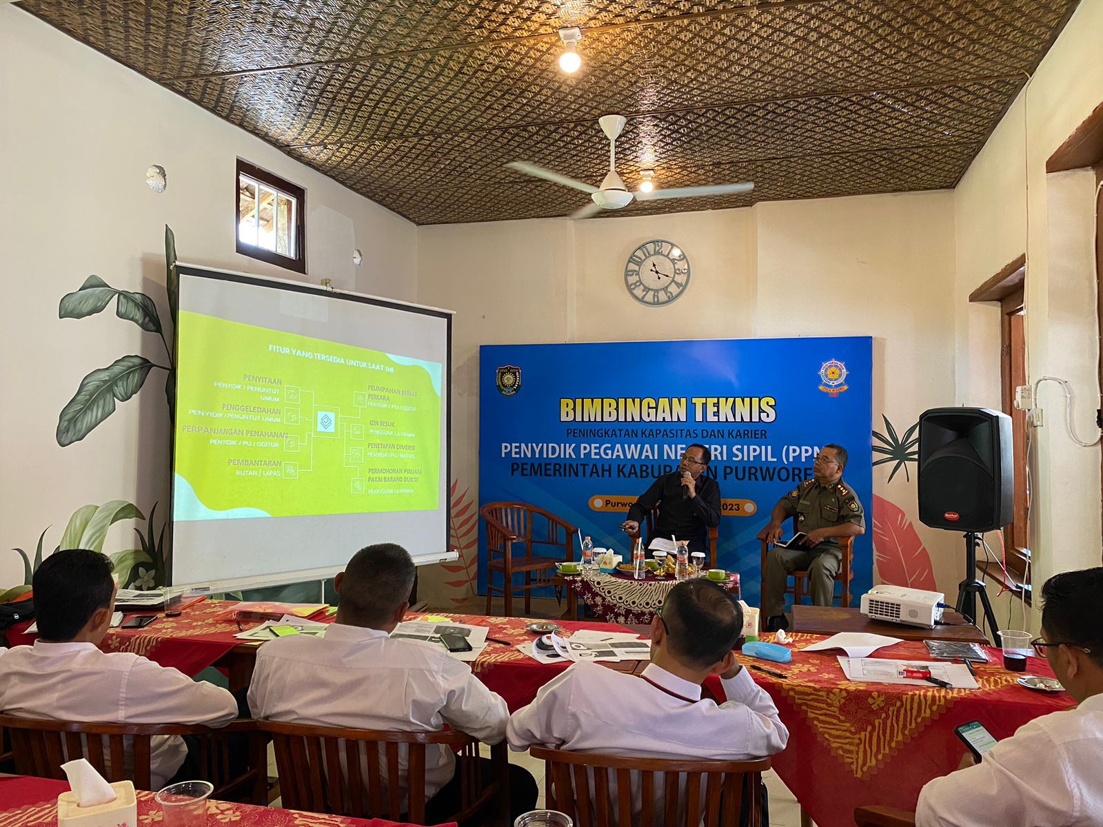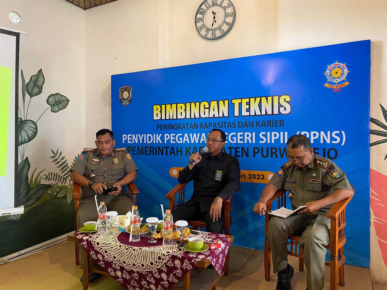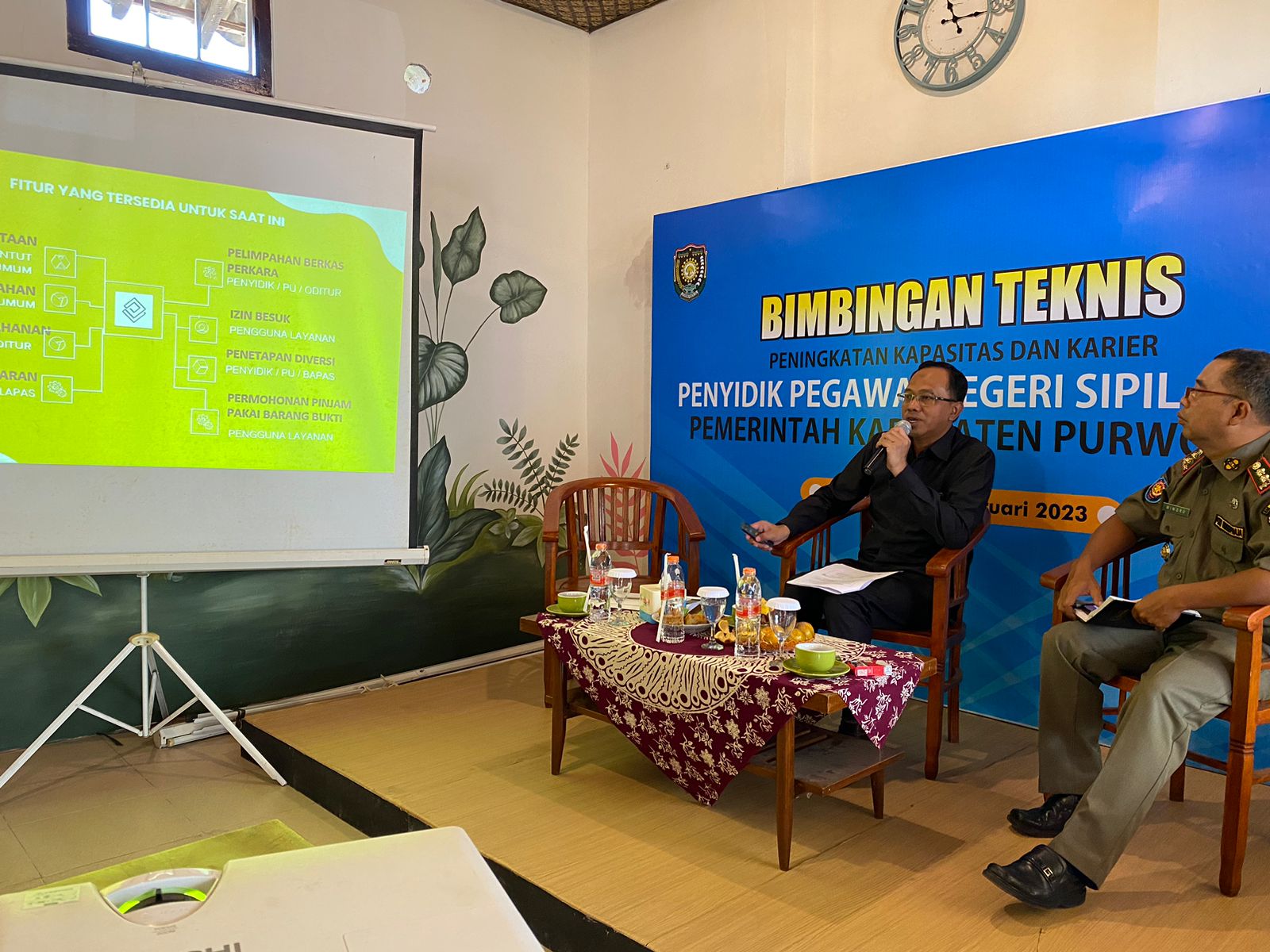 Purworejo, 21 Februari 2023. Ketua Pengadilan Negeri Purworejo Bapak Purnomo Hadiyarto, S.H. mensosialisasikan Elektronik Berkas Pidana Terpadu yang disingkat e-BERPADU pada kegiatan Bimbingan Teknis Pengembangan Kapasitas dan Karier PPNS Pemerintah Kabupaten Purworejo yang diselenggarankan oleh Pemerintah Kab. Purworejo Satuan Polisi Pamong Praja dan Pemadam Kebakaran. Kegiatan Pengembangan Kapasitas dan Karier PPNS ini dihadiri oleh Bagian Hukum Setda Kab. Purworejo, Sekda Purworejo, Kejaksaan Negeri Purworejo, Polres Purworejo.