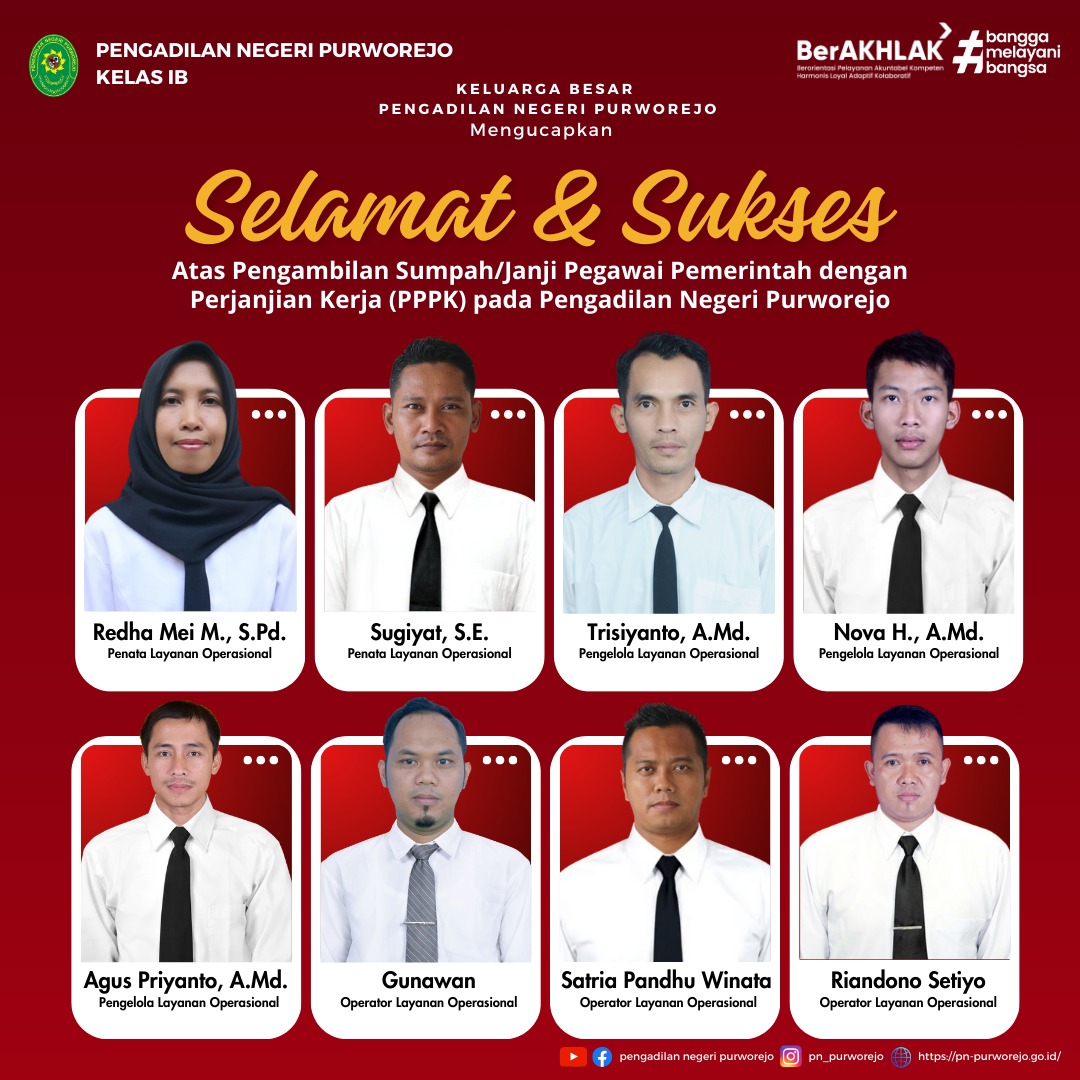 Selamat dan Sukses atas Pengambilan Sumpah / Janji Pegawai Pemerintah dengan Perjanjian Kerja (PPPK) pada Pengadilan Negeri Purworejo