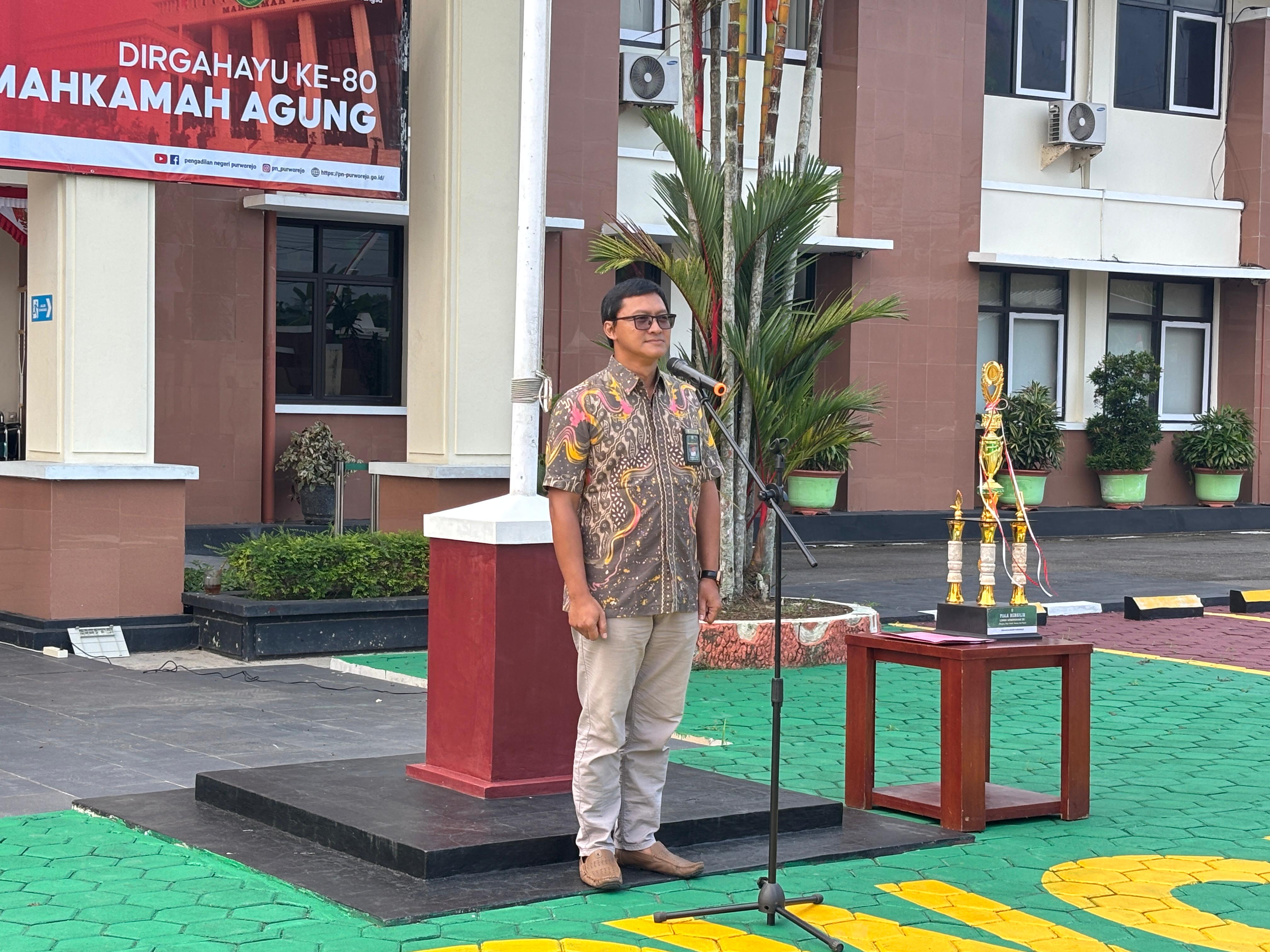Purworejo - Jumat, 22 Agustus 2025. Kegiatan apel sore dipimpin oleh Wakil Ketua Pengadilan Negeri Purworejo Bapak Hernawan, S.H., M.H. dan diikuti oleh seluruh Aparatur Sipil Negara serta para PPNPN Pengadilan Negeri Purworejo.