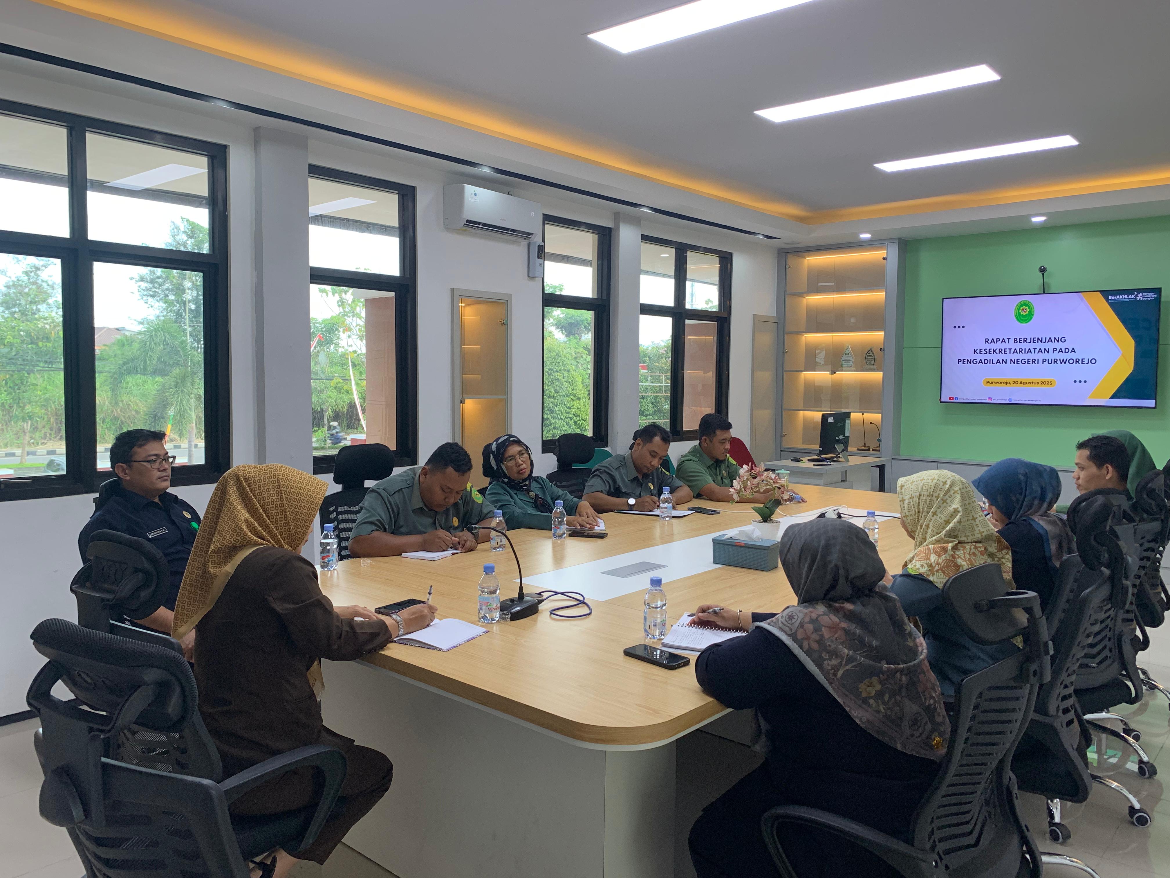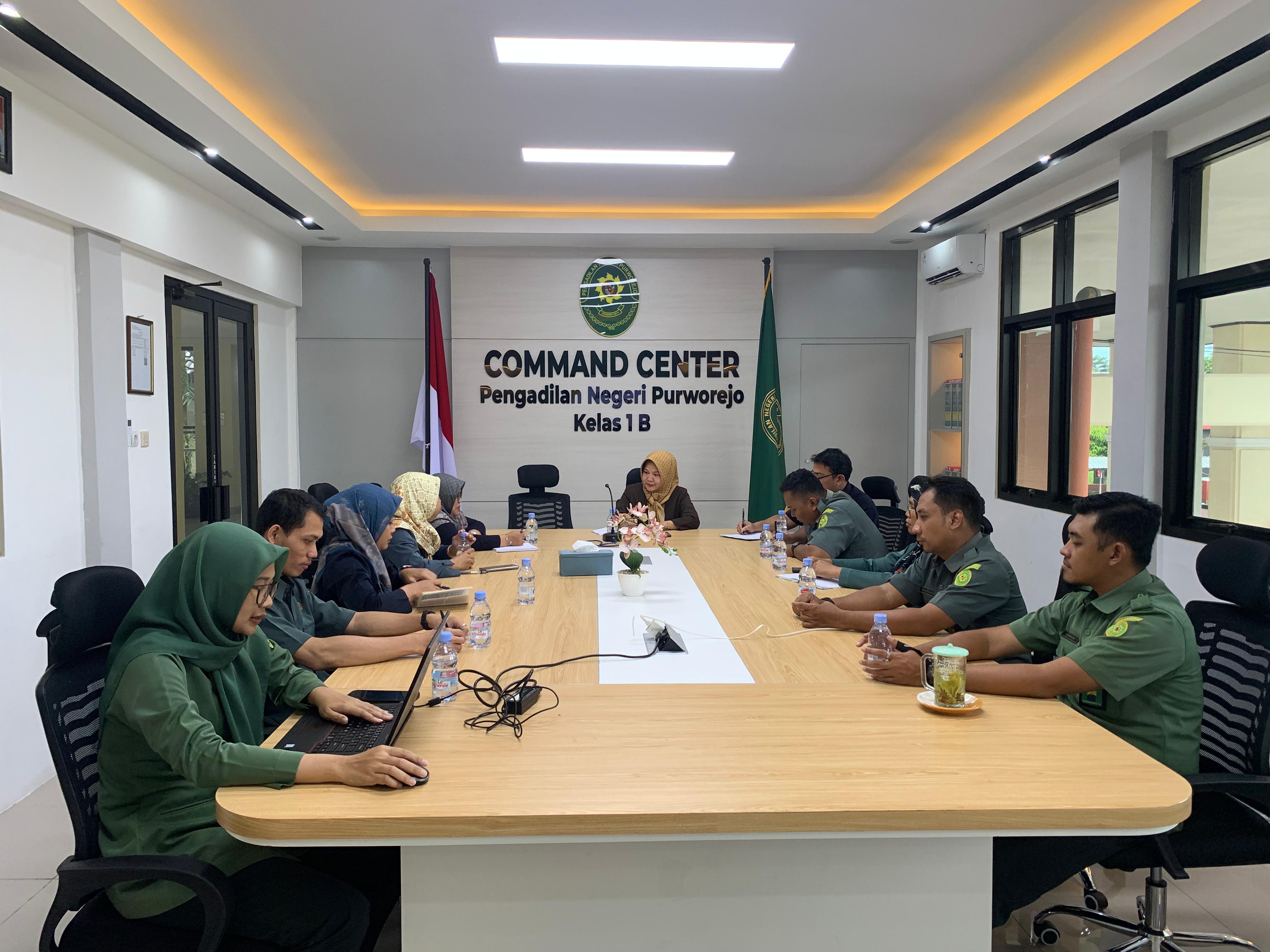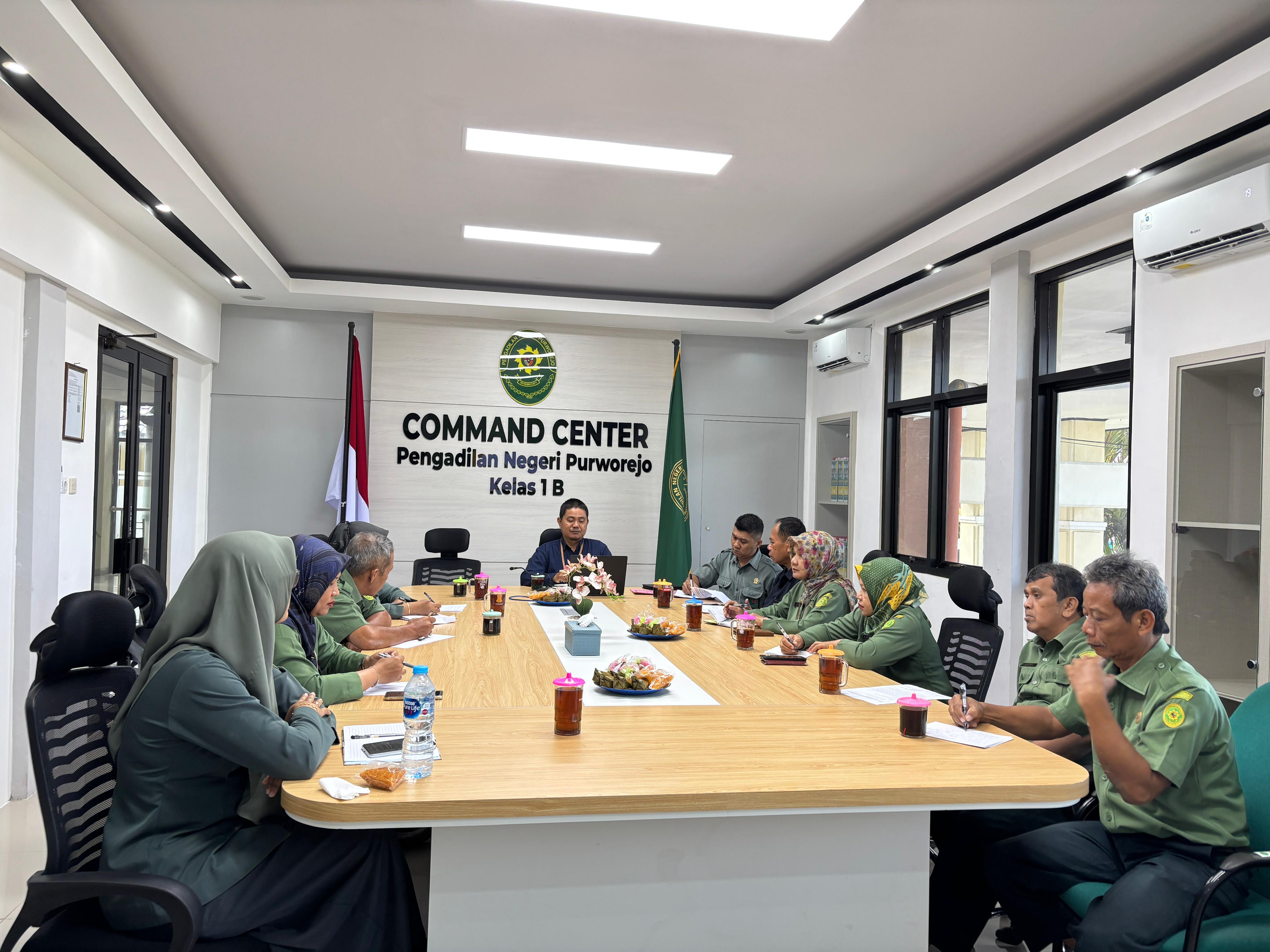 Purworejo - Rabu, 20 Agustus 2025. Bertempat di Ruang Command Center Pengadilan Negeri Purworejo dilaksanakan Rapat Kepaniteraan yang dipimpin oleh Panitera Pengadilan Negeri Purworejo Bapak Supriadi, S.H. dan diikuti oleh seluruh Panitera Muda dan jajarannya.