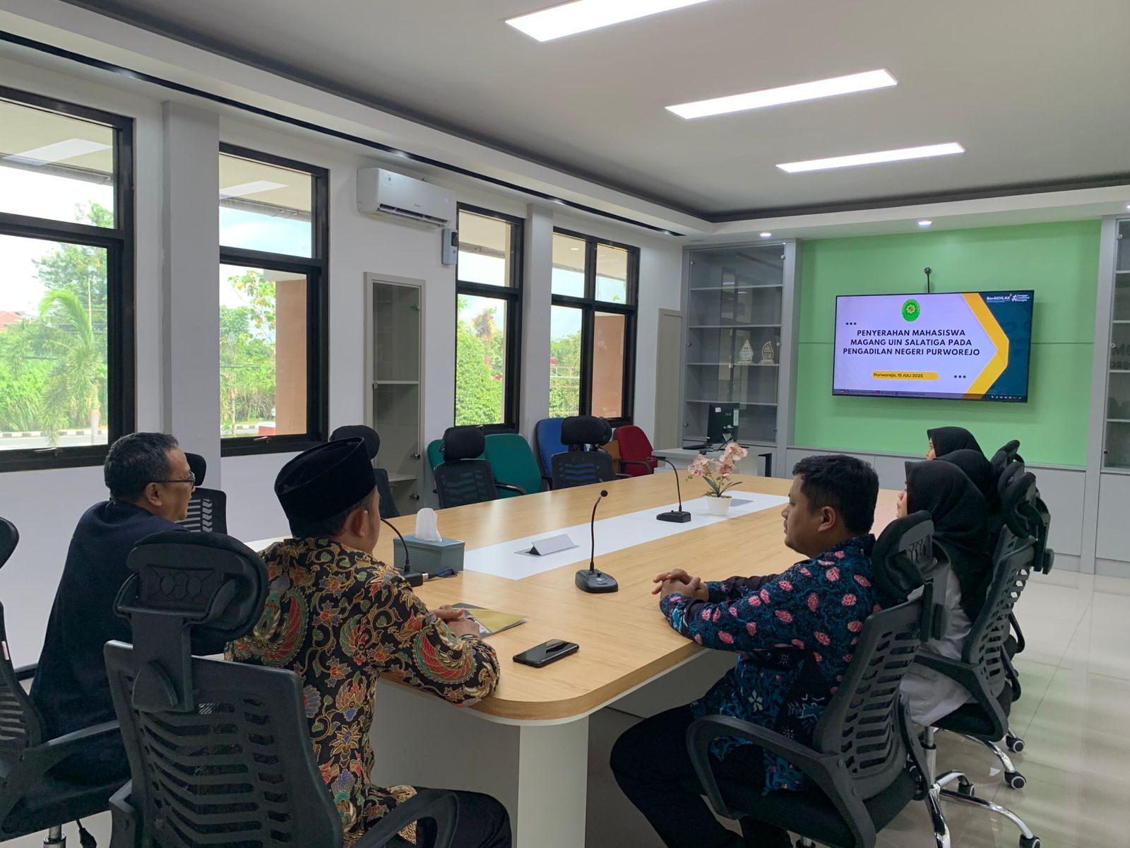 Purworejo - Selasa, 15 Juli 2025. Ketua Pengadilan Negeri Purworejo Bapak R. Heddy Bellyandi, S.H., M.H. menerima mahasiswa magang dari UIN Salatiga pada Pengadilan Negeri Purworejo bertempat di Command Center Pengadilan Negeri Purworejo.