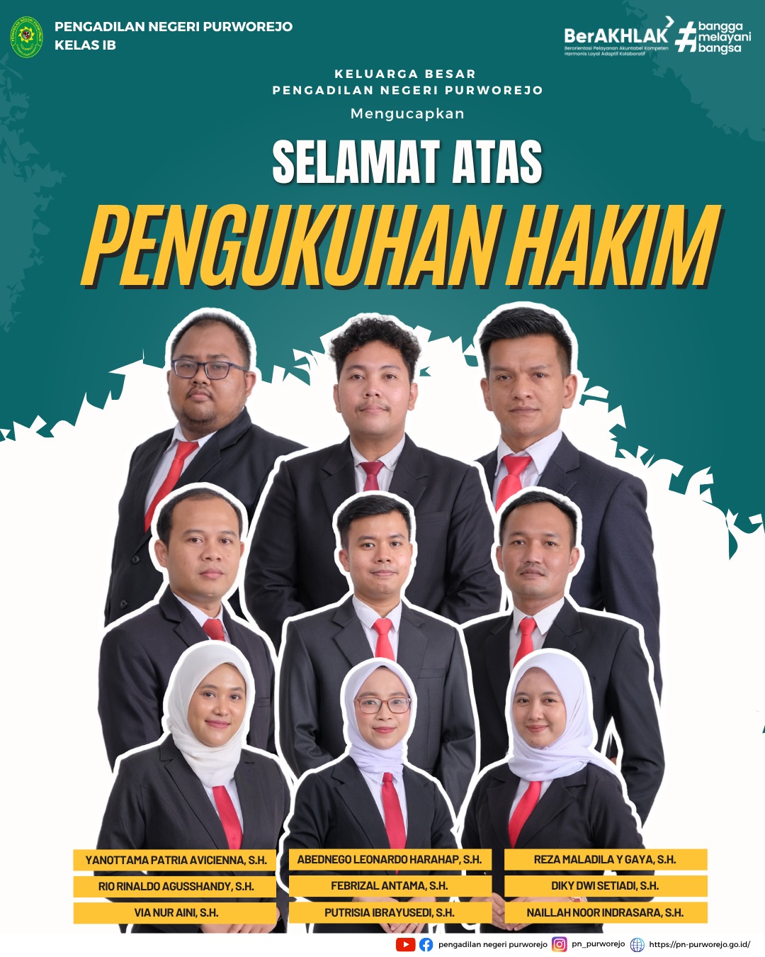 Purworejo – Kamis, 12 Juni 2025. Ketua Pengadilan Negeri Purworejo Bapak R. Heddy Bellyandi, S.H., M.H. didampingi oleh Wakil Ketua Pengadilan Negeri Purworejo Bapak Hernawan, S.H., M.H. menyaksikan Pengukuhan Hakim Tahun 2025 secara daring bertempat di Command Center Pengadilan Negeri Purworejo.