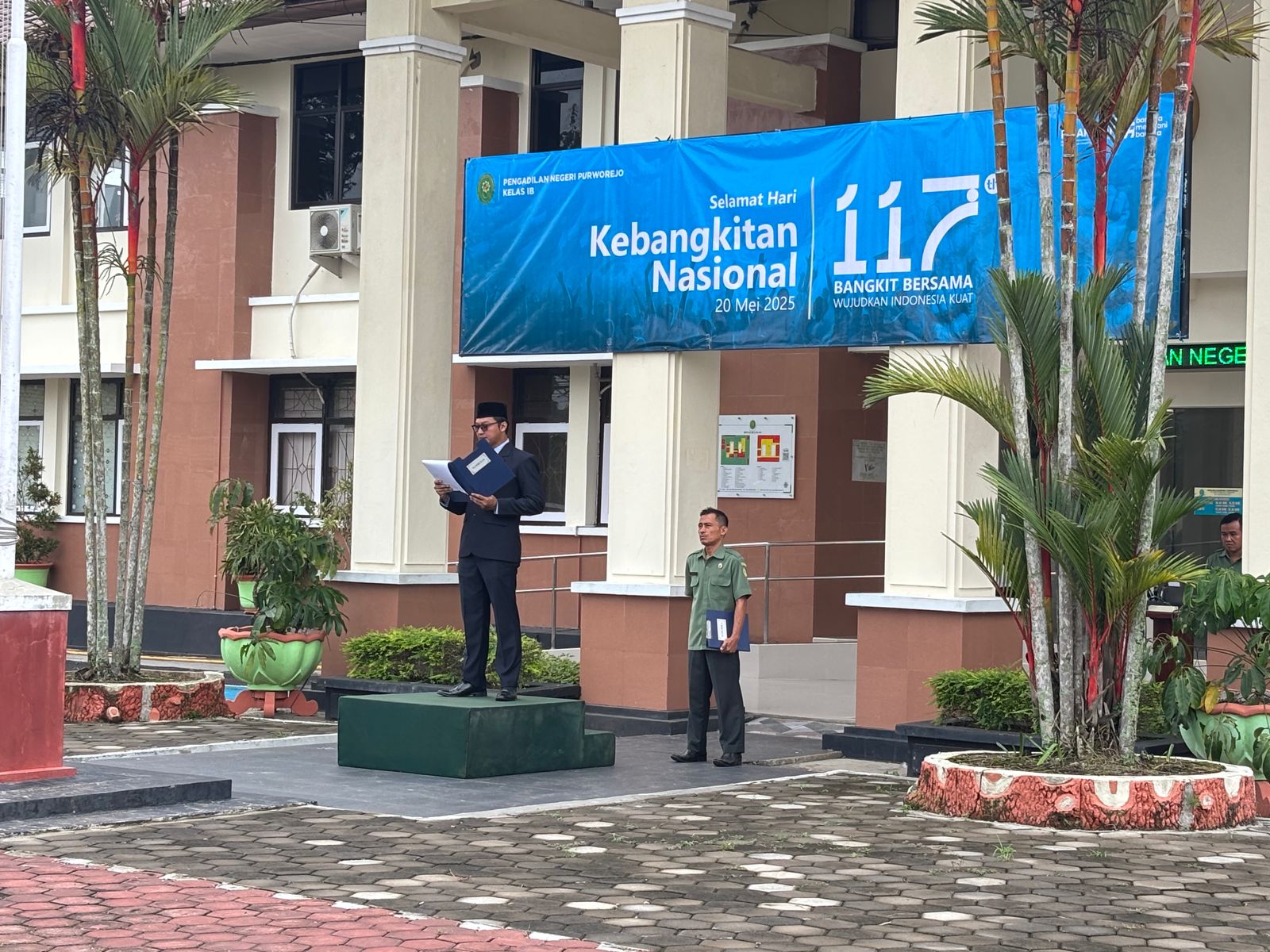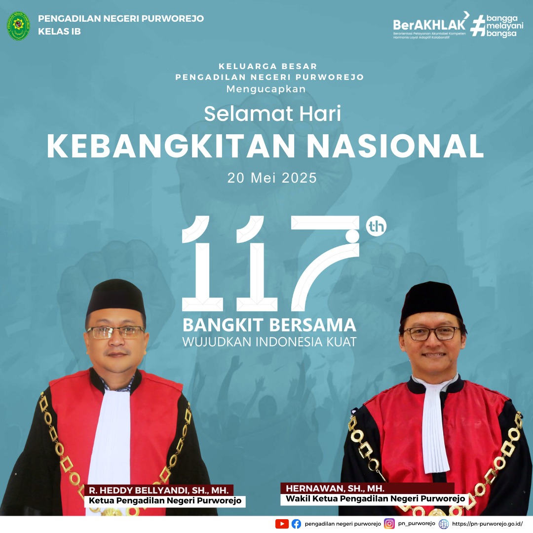 Purworejo - Selasa, 20 Mei 2025. Bertempat di Halaman Depan Kantor Pengadilan Negeri Purworejo dilaksanakan Upacara Peringatan Hari Kebangkitan Nasional ke 117 yang dipimpin okeh Wakil Ketua Pengadilan Negeri Purworejo Bapak Hernawan, S.H., M.H. dan dihadiri oleh seluruh Keluarga Besar Pengadilan Negeri Purworejo.