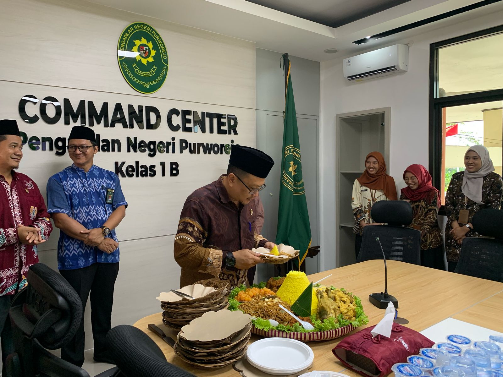 Purworejo - Jumat, 14 Februari 2025. Pengadilan Negeri Purworejo mengadakan Syukuran dan Peresmian Ruang Command Center Pengadilan Negeri Purworejo yang ditandai dengan pemotongan tumpeng oleh Ketua Pengadilan Negeri Purworejo Bapak R. Heddy Bellyandi, S.H., M.H., doa bersama yang dipimpin oleh Ustadz Muhammad Wahid Romadhon, LC serta dihadiri seluruh Keluarga Besar Pengadilan Negeri Purworejo.