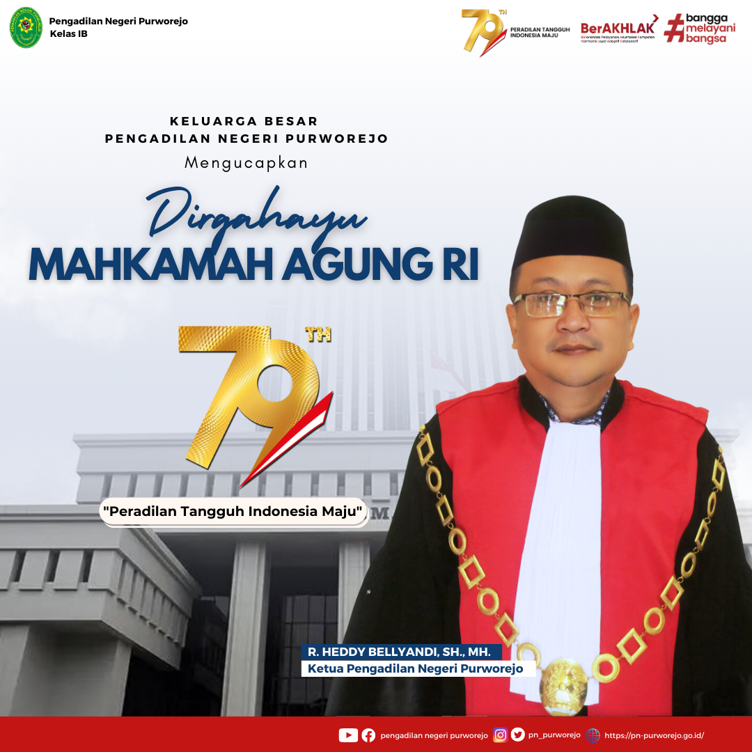 Purworejo – Senin, 19 Agustus 2024. Pengadilan Negeri Purworejo melaksanakan Upacara Peringatan Hari Ulang Tahun Mahkamah Agung Republik Indonesia ke-79. Ketua Pengadilan Negeri Purworejo Bapak R. Heddy Bellyandi, S.H., M.H. bertindak sebagai Pembina Upacara dan diikuti seluruh Keluarga Besar Pengadilan Negeri Purworejo. Upacara dilaksanakan bertempat di halaman depan Kantor Pengadilan Negeri Purworejo.