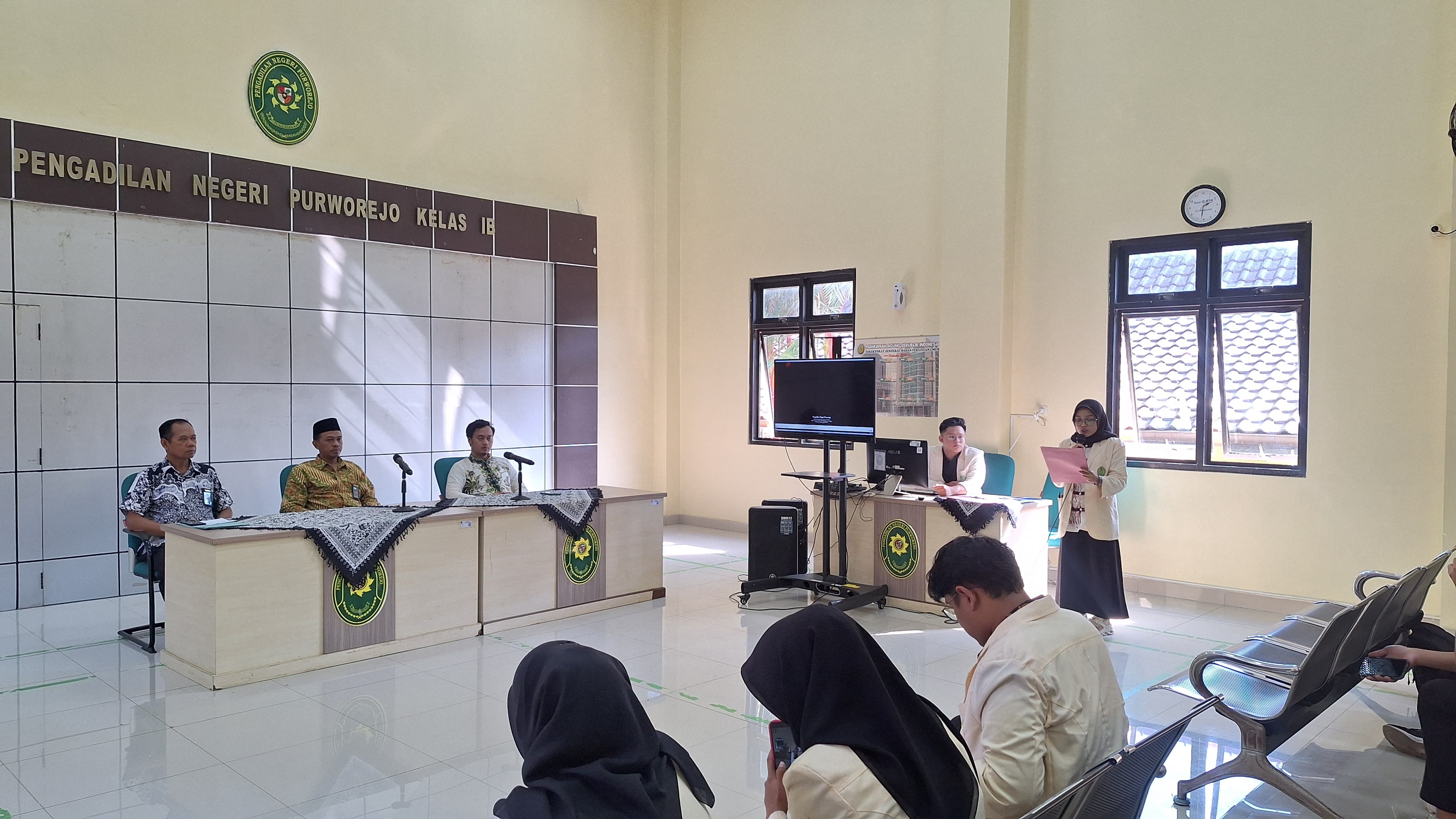 Hakim Pengadilan Negeri Purworejo mengikuti Monitoring dan Evaluasi Diklat Program Pendidikan Calon Hakim (PPCH) Terpadu Gelombang 1 didampingi oleh Ketua Pengadilan Negeri Purworejo Bapak Purnomo Hadiyarto, S.H. selaku Tutor dari para Calon Hakim Pengadilan Negeri Purworejo dan Hakim Pengadilan Negeri Purworejo Bapak John Ricardo, S.H. dan Muhammad Asnawi Said, S.H., M.H. selaku Mentor dari para Calon Hakim Pengadilan Negeri Purworejo.