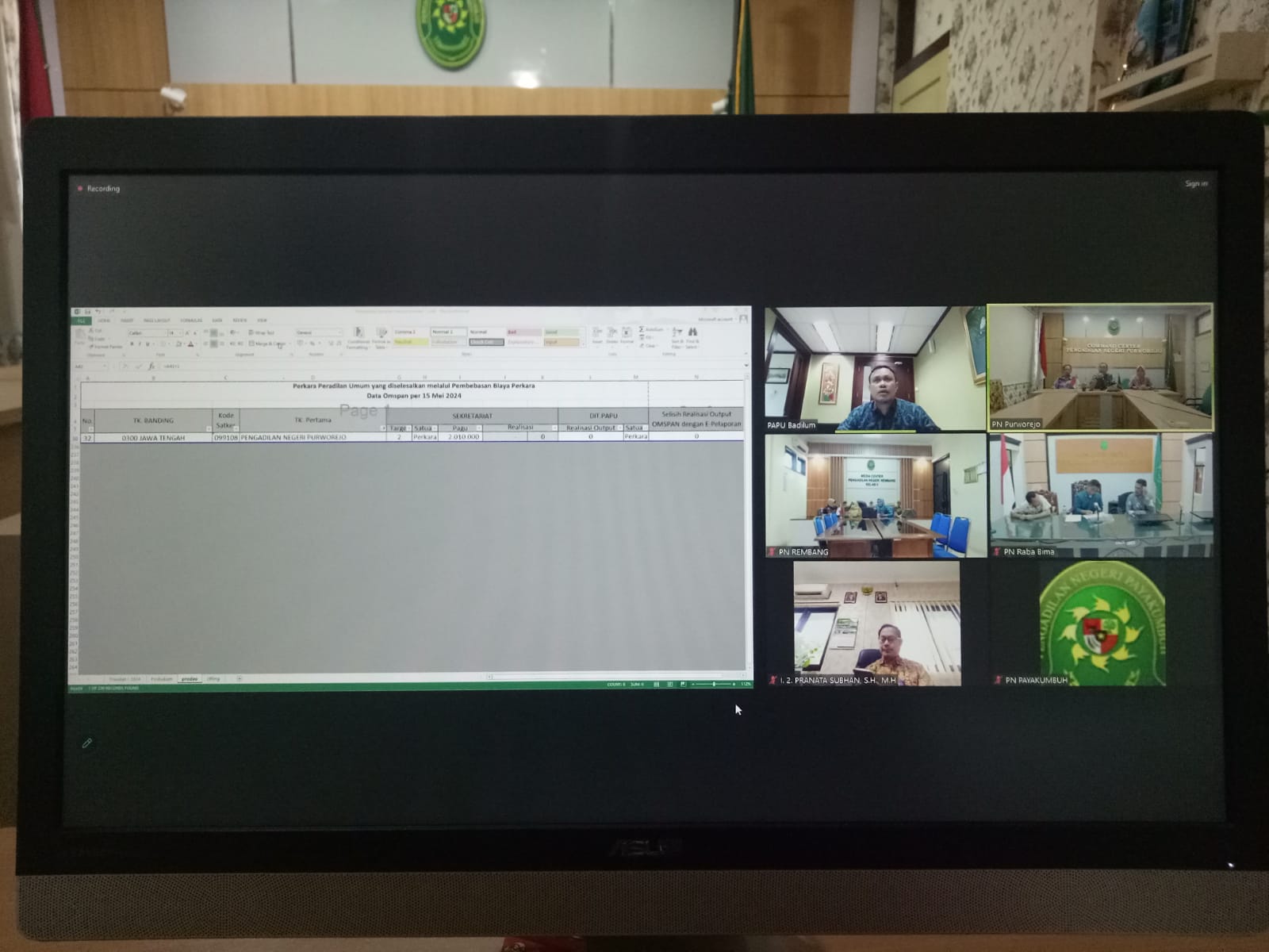 Purworejo – Kamis, 20 Juni 2024. Wakil Ketua Pengadilan Negeri Purworejo Bapak Santonius Tambunan, S.H., M.H. didampingi Sekretaris Pengadilan Negeri Purworejo, Panitera Muda Hukum Pengadilan Negeri Purworejo dan Kepala Sub Bagian PTIP Pengadilan Negeri Purworejo menghadiri Rapat Evaluasi Penyerapan Anggaran dan Penginputan Data Pelaporan Layanan Hukum secara virtual.