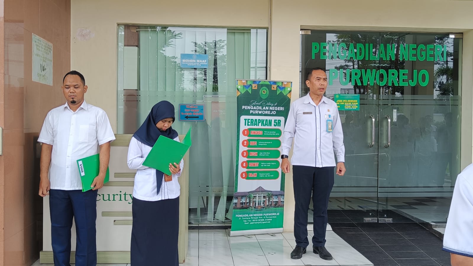 Purworejo – Senin, 27 Mei 2024. Kegiatan apel pagi dipimpin oleh Wakil Ketua Pengadilan Negeri Purworejo Bapak Santonius Tambunan, S.H., M.H. dan diikuti oleh seluruh Aparatur Sipil Negara serta para PPNPN Pengadilan Negeri Purworejo.