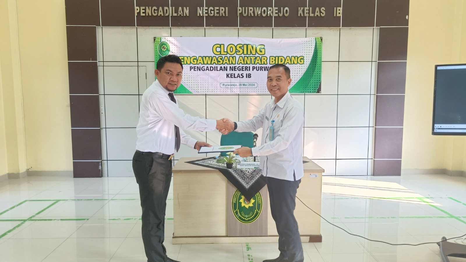 Purworejo – Senin, 20 Mei 2024. Pengadilan Negeri Purworejo melaksanakan Closing Pengawasan Antar Bidang pada Pengadilan Negeri Purworejo. Kegiatan ini dipimpin oleh Wakil Ketua Pengadilan Negeri Purworejo Bapak Santonius Tambunan, S.H., M.H dan dihadiri oleh seluruh Keluarga Besar Pengadilan Negeri Purworejo.