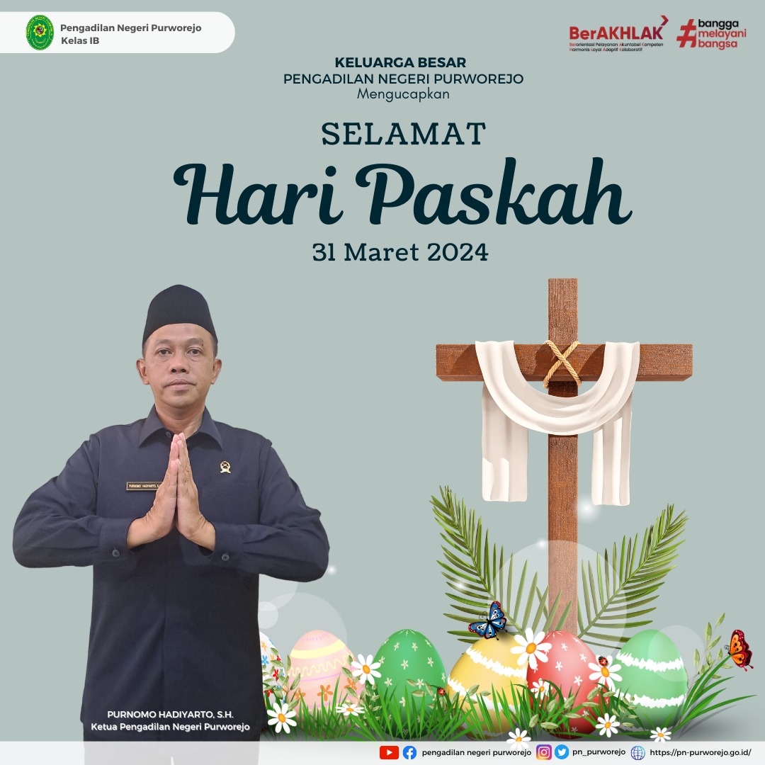Keluarga Besar Pengadilan Negeri Purworejo mengucapkan Selamat Merayakan Hari Paskah 31 Maret 2024.