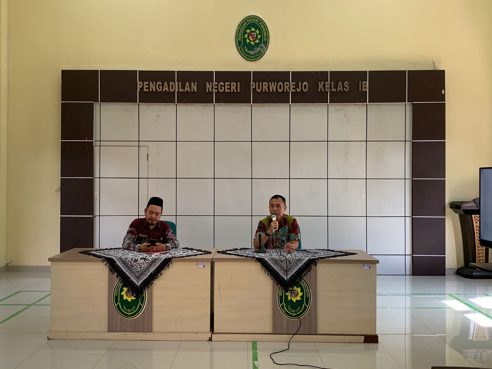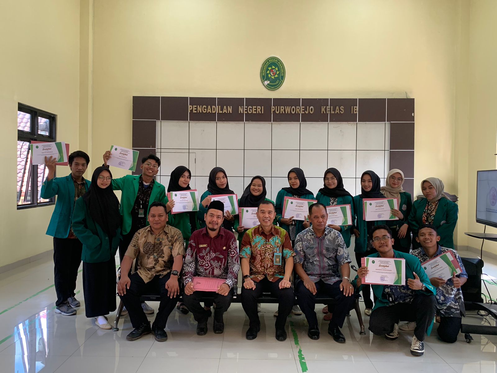 Purworejo - Jumat, 16 Februari 2024. Pengadilan Negeri Purworejo mengadakan Pelepasan Mahasiswa Magang dari UIN Saizu Purwokerto bertempat di Aula Pengadilan Negeri Purworejo yang dipimpin oleh Wakil Ketua Pengadilan Negeri Purworejo Bapak Santonius Tambunan, S.H., M.H. didampingi Panitera Muda Hukum Pengadilan Negeri Purworejo Bapak Purnomo, S.H..