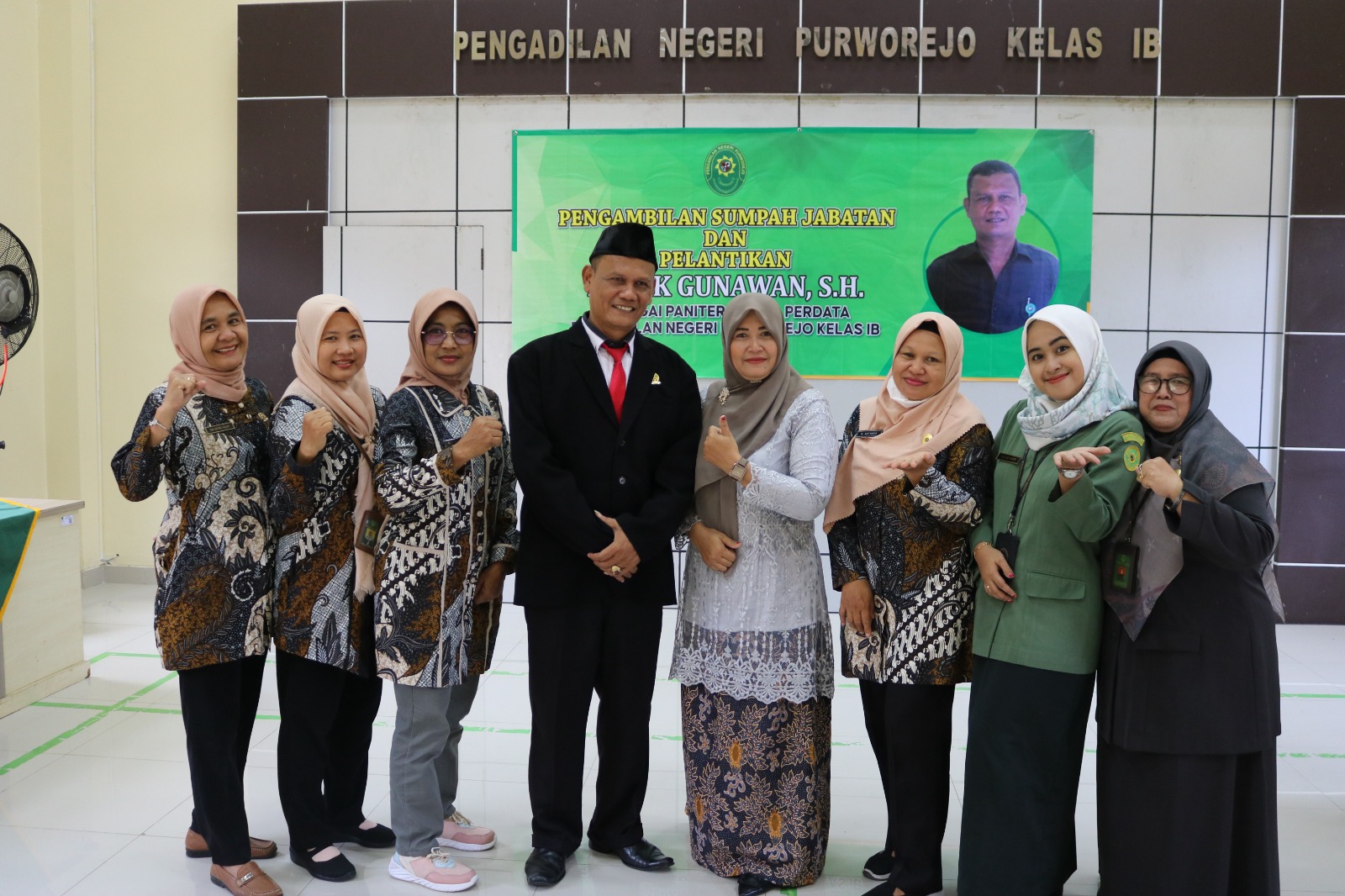 Keluarga Besar Pengadilan Negeri Purworejo mengucapkan Selamat dan Sukses atas Pelantikan dan Pengambilan Sumpah Bapak Gunawan, S.H. sebagai Panitera Muda Perdata Pengadilan Negeri Purworejo.