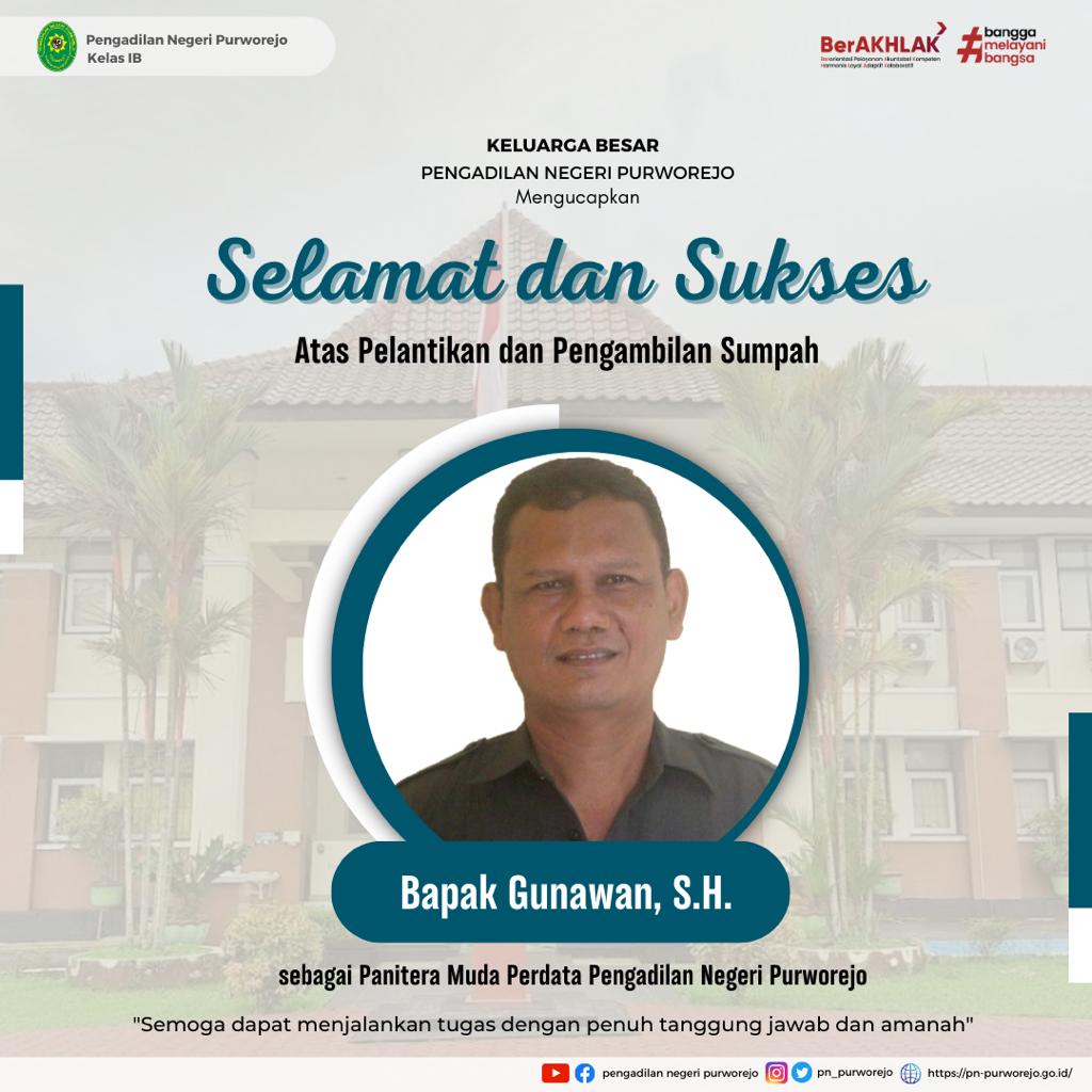 Selamat dan Sukses atas Pelantikan dan Pengambilan Sumpah Bapak Gunawan, S.H. sebagai Panitera Muda Perdata Pengadilan Negeri Purworejo