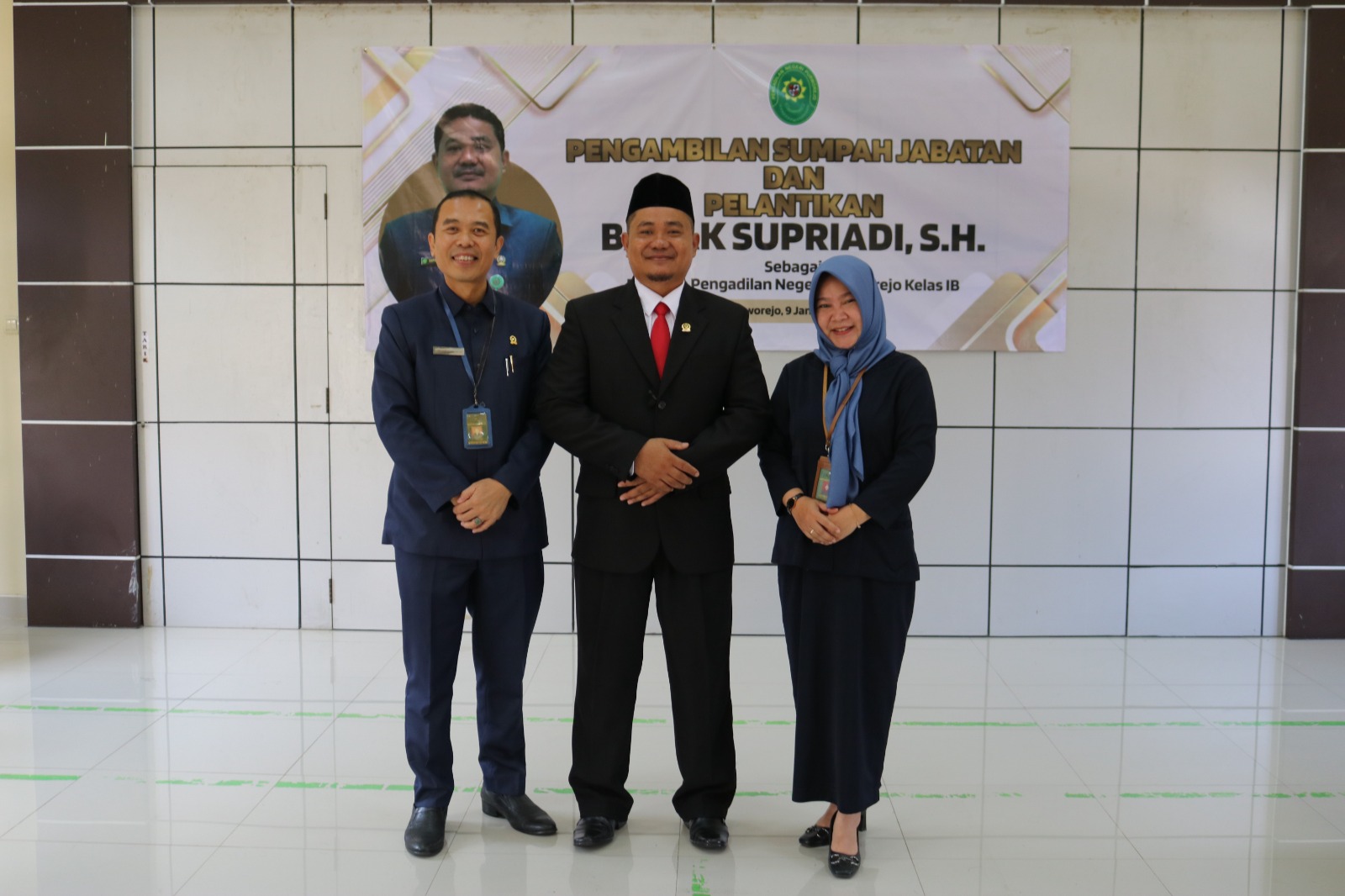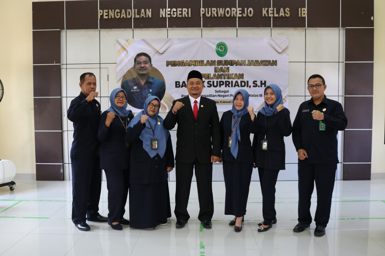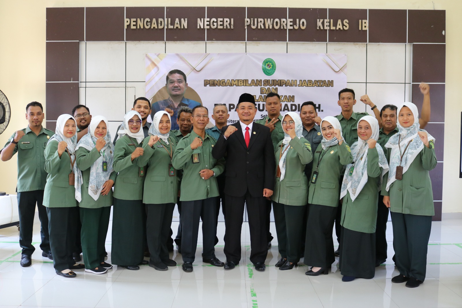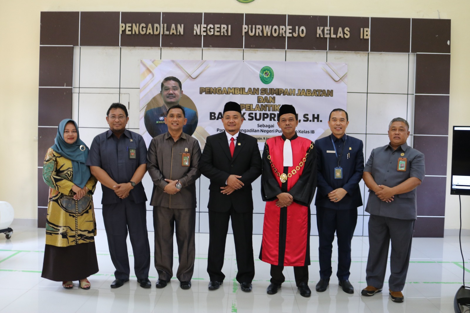 Acara berlangsung dengan khidmat, pada akhir acara seluruh undangan memberikan ucapan selamat dan berfoto bersama pada Bapak Supriadi, S.H.. Setelah itu acara dilanjut dengan perkenalan Panitera Pengadilan Negeri Purworejo Bapak Supriadi, S.H. dihadapan seluruh Keluarga Besar Pengadilan Negeri Purworejo.