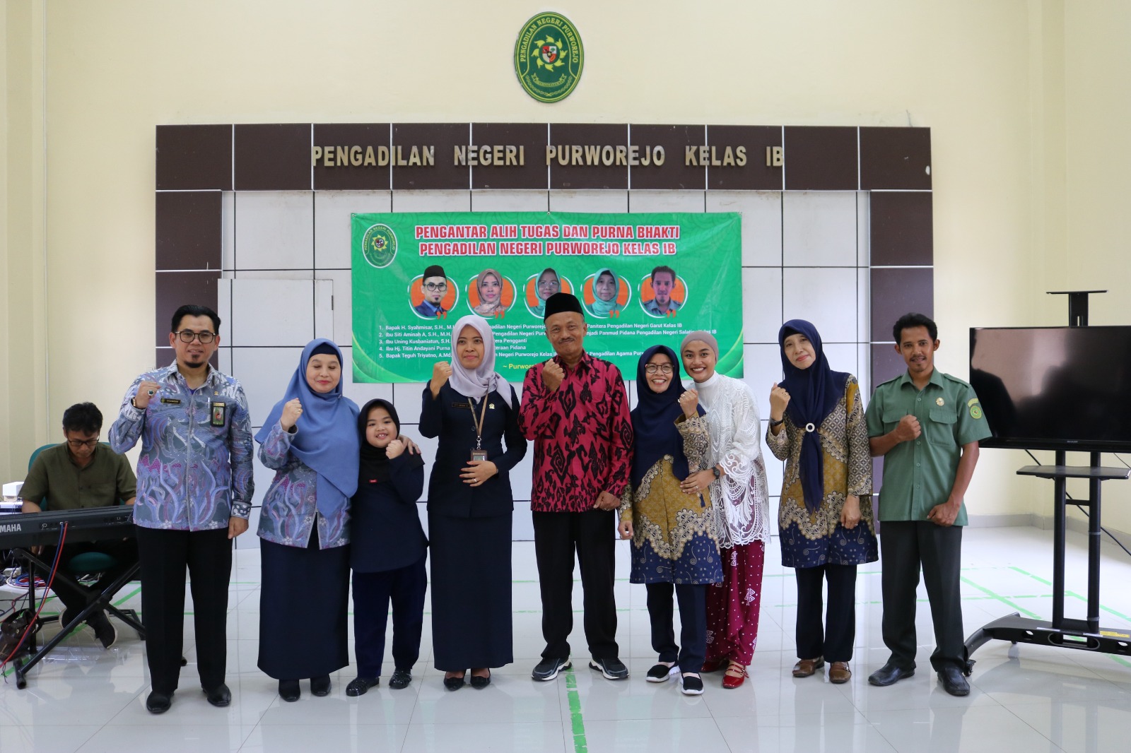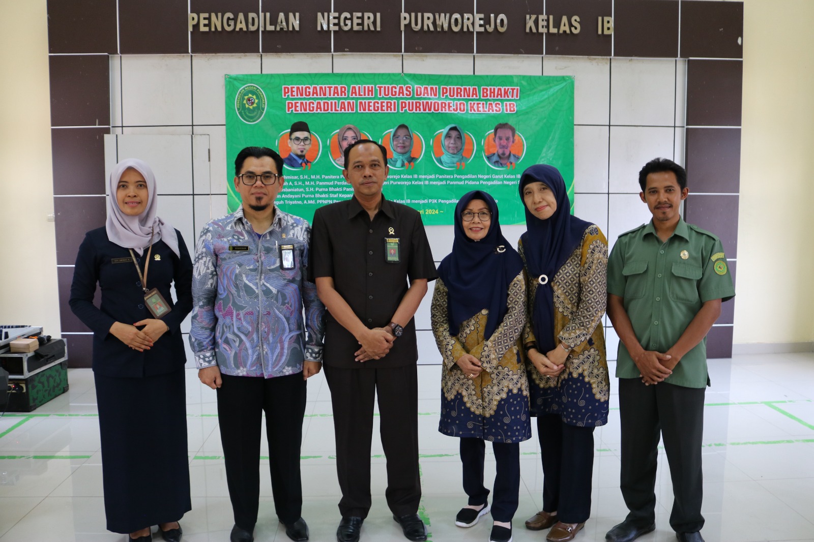 Purworejo – Selasa, 2 Januari 2024. Pengadilan Negeri Purworejo mengadakan Pengantar Alih Tugas Pengantar Purna Bakti Bapak Syahmisar, S.H., M.H., Ibu Siti Aminah A, S.H., Ibu Uning Kusbaniatun, Ibu Titin Andayani dan Bapak Teguh Triyatno, A.Md. yang bertempat di Aula Pengadilan Negeri Purworejo.