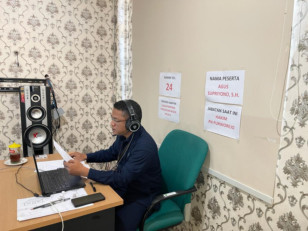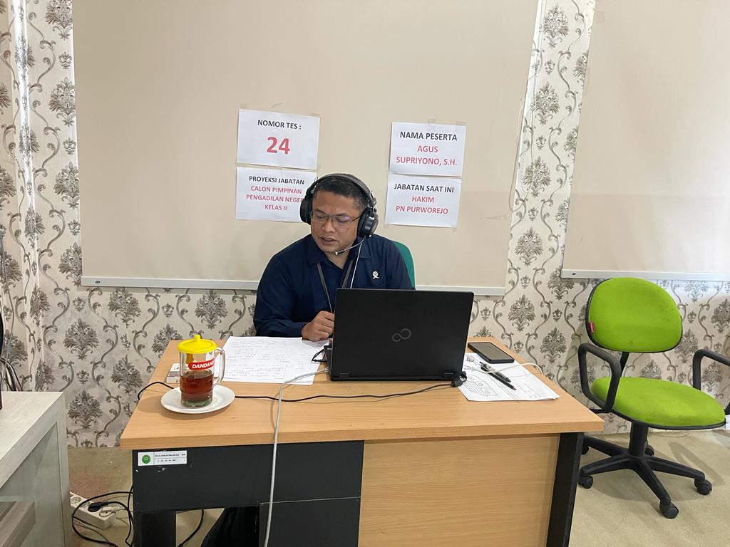 Purworejo – Rabu, 20 Desember 2023. Hakim Pengadilan Negeri Purworejo Bapak Agus Supriyono, S,H. mengikuti Profile Assesment bagi Calon Pimpinan Pengadilan Negeri Klas II TA. 2023.