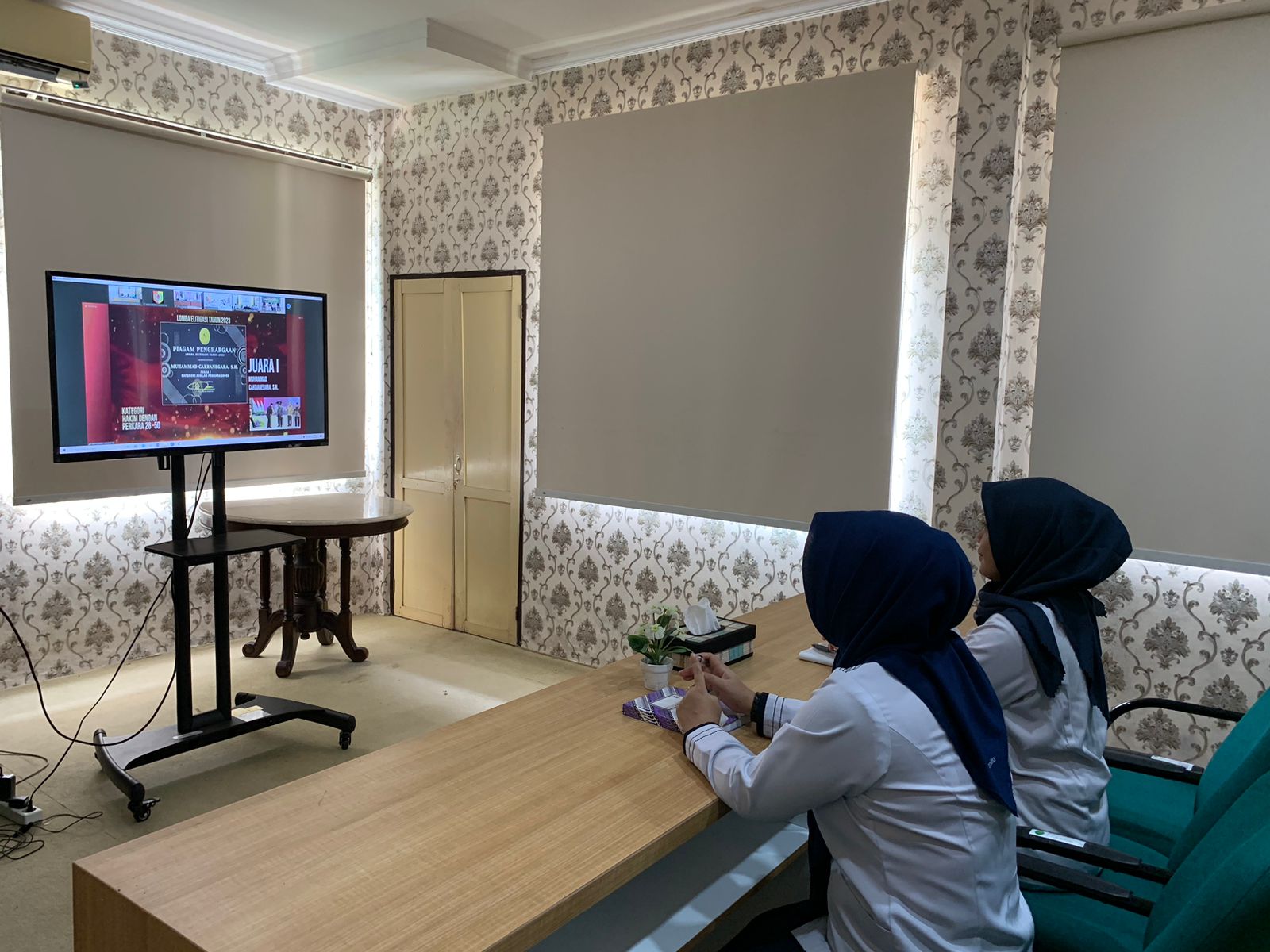 Purworejo – Senin, 11 Desember 2023. Sekretaris Pengadilan Negeri Purworejo Ibu Puspita Primavita, S.Kom. didampingi Kepala Sub Bagian Umum dan Keuangan Ibu Hesti Srieyanti, S.H. menghadiri kegiatan Anugerah Abhinaya Upangga 2023 dan Penyerahan Penghargaan Peningkatan Kinerja Peradilan Umum secara virtual bertempat di Ruang Video Teleconference.