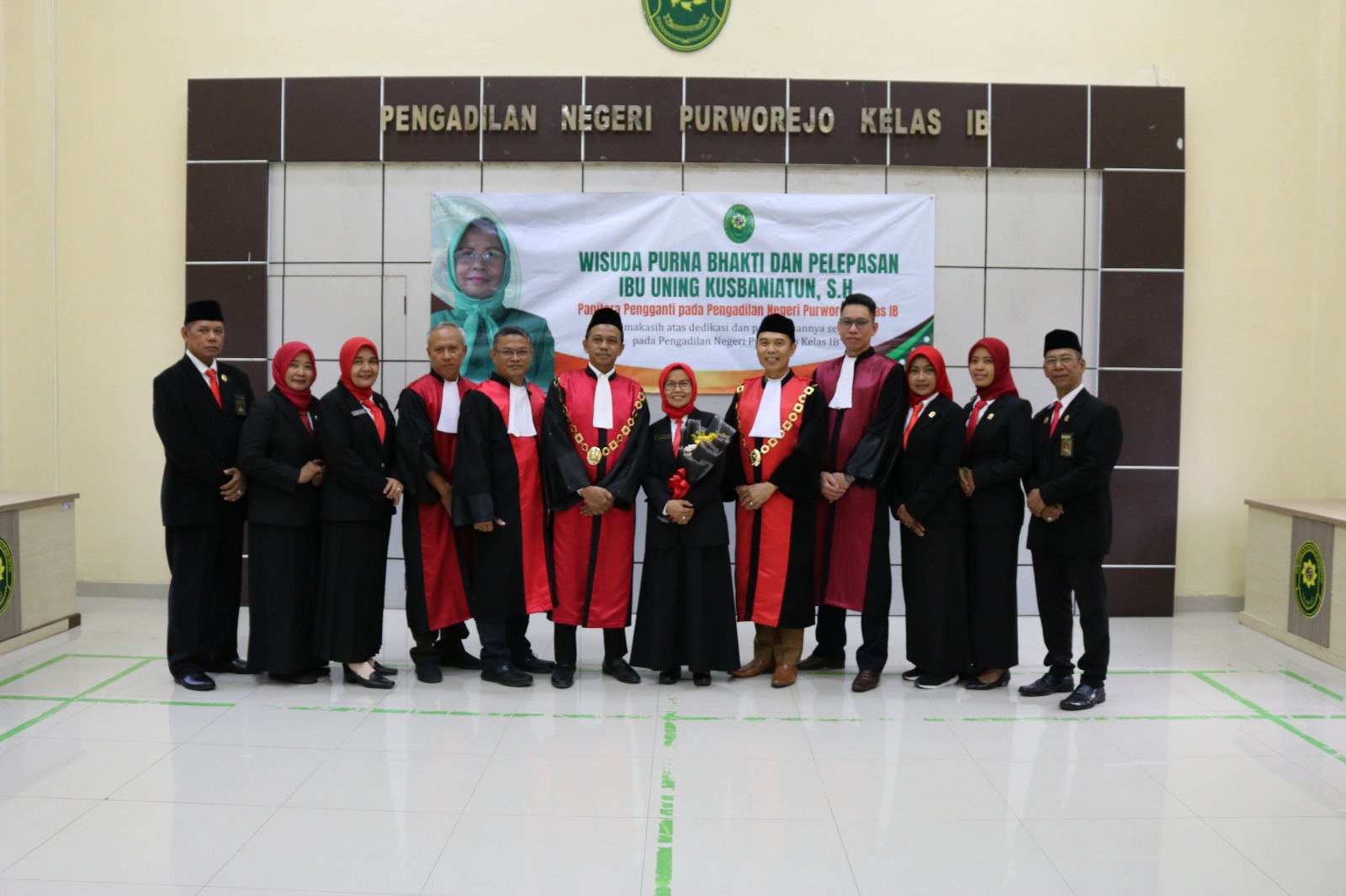 Purworejo – 31 Oktober 2023. Bertempat di Aula Pengadilan Negeri Purworejo dilaksanakan Wisuda Purnabakti dan Pelepasan Panitera Pengganti Pengadilan Negeri Purworejo Ibu Uning Kusbaniatun, S.H.. Kegiatan ini dipimpin langsung oleh Ketua Pengadilan Negeri Purworejo Bapak Purnomo Hadiyarto, S.H. dan dihadiri seluruh Keluarga Besar Pengadilan Negeri Purworejo.
