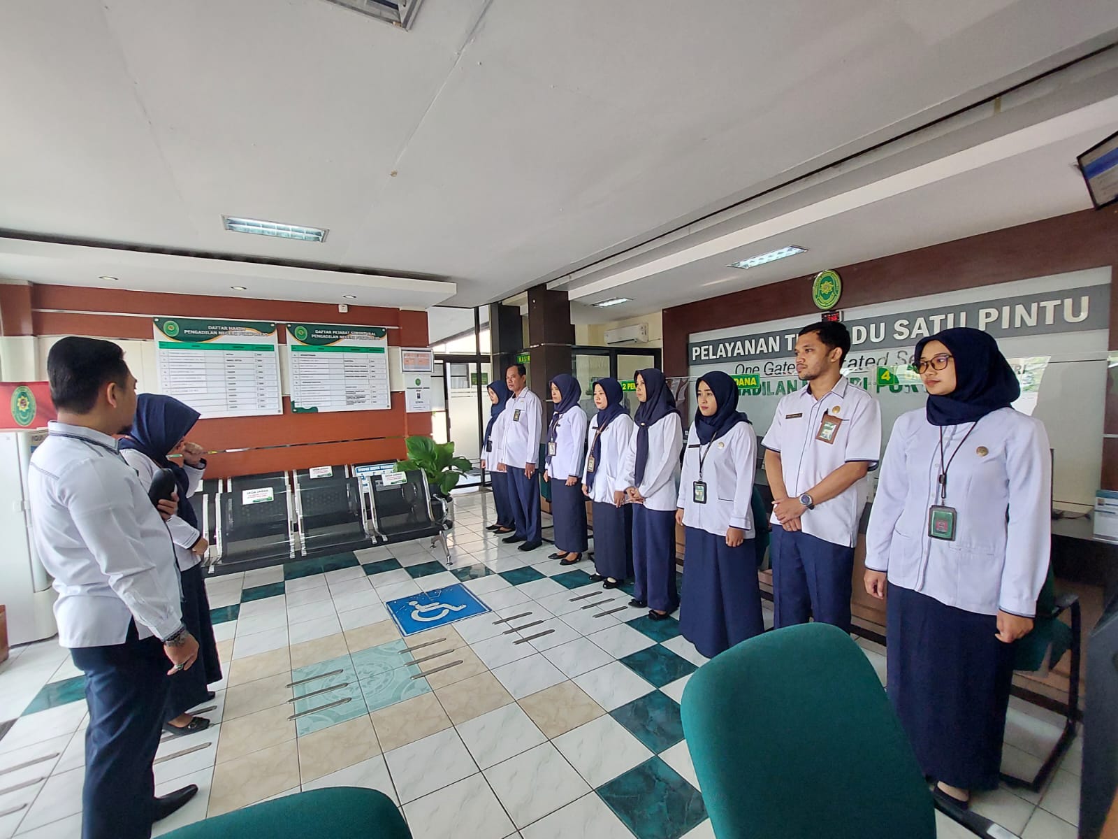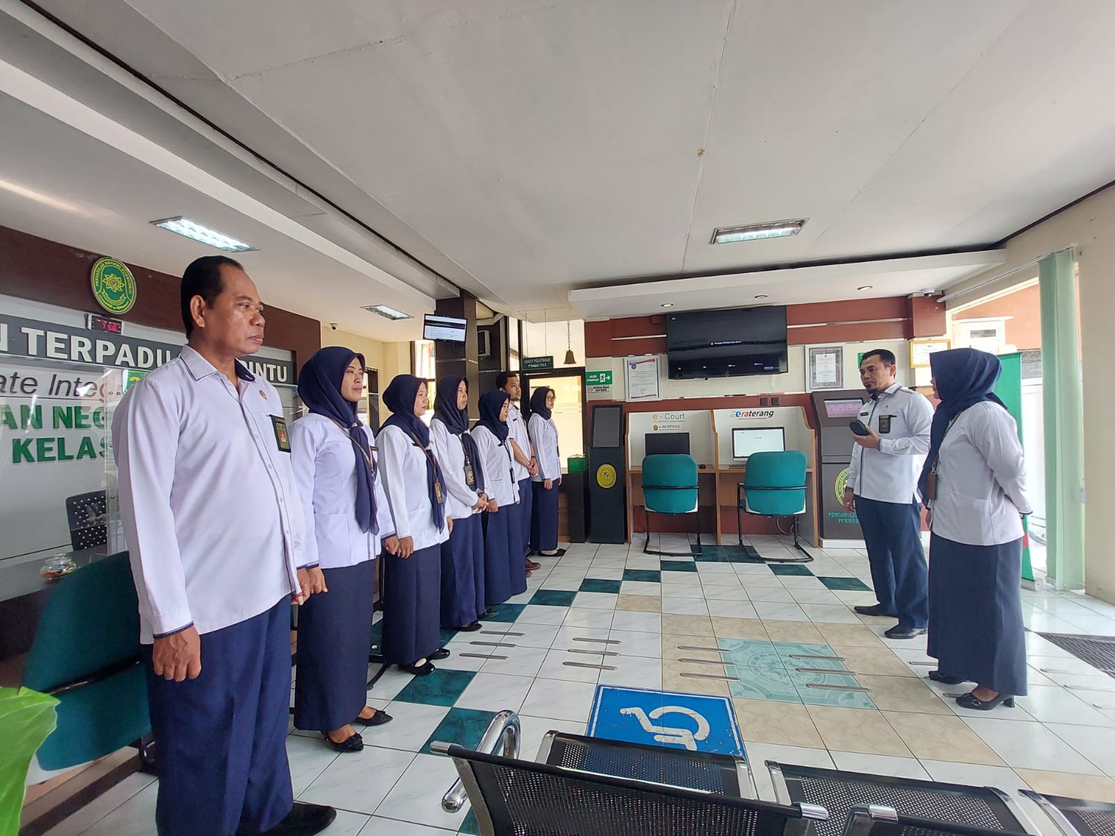 Purworejo – Senin, 09 September 2023. Panitera dan Sekretaris Pengadilan Negeri Purworejo didampingi para pejabat struktural memberikan arahan kepada para petugas PTSP.