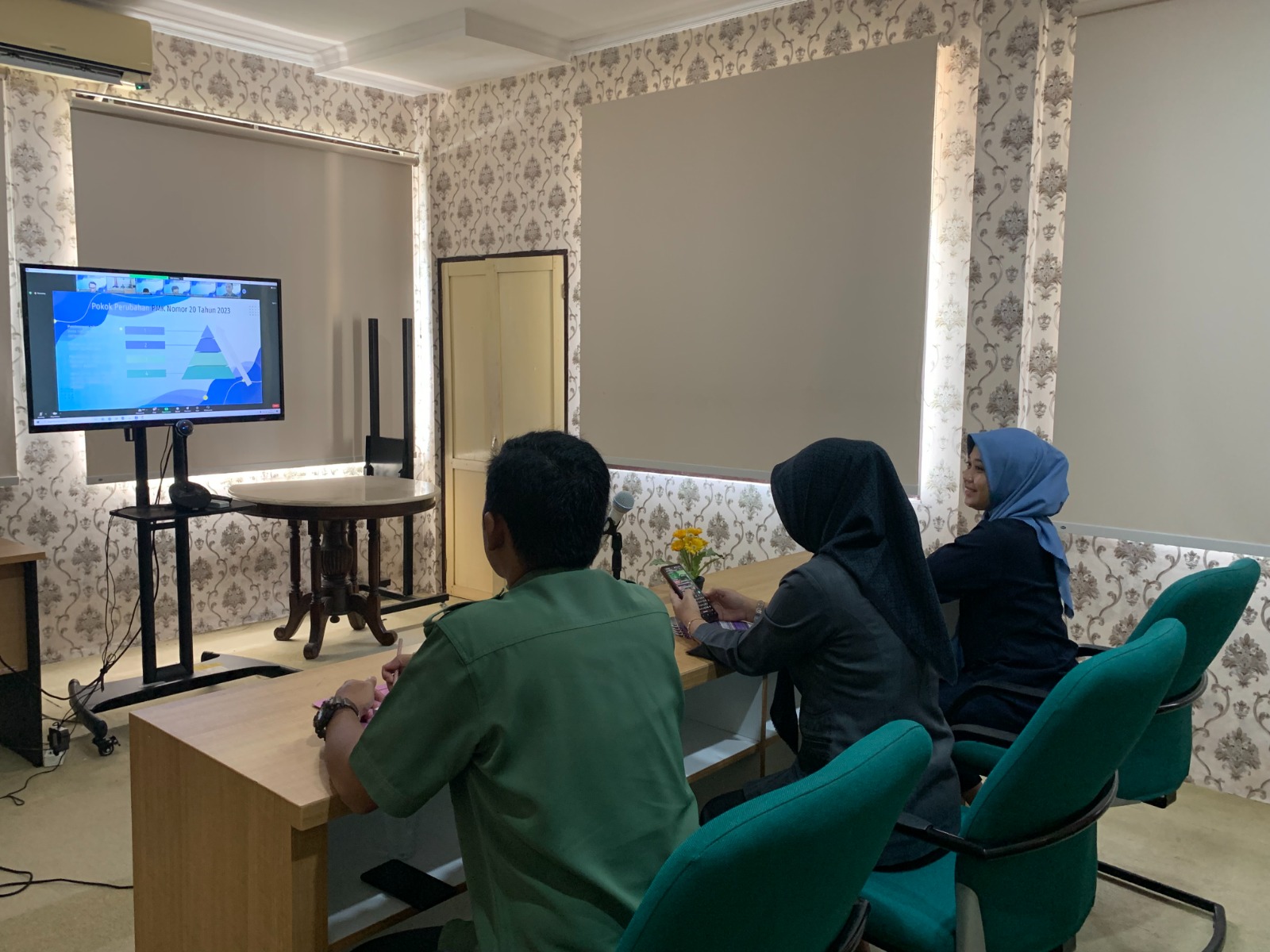 Purworejo - Selasa, 26 September 2023. Dharmayukti Cabang Purworejo menghadiri Penyelenggaraan HUT DYK XXI Tahun 2023 secara virtual melalui Zoom Meeting oleh Pengurus Daerah Dharmayukti Karini Provinsi Jawa Tengah bertempat di Aula Pengadilan Negeri Purworejo.