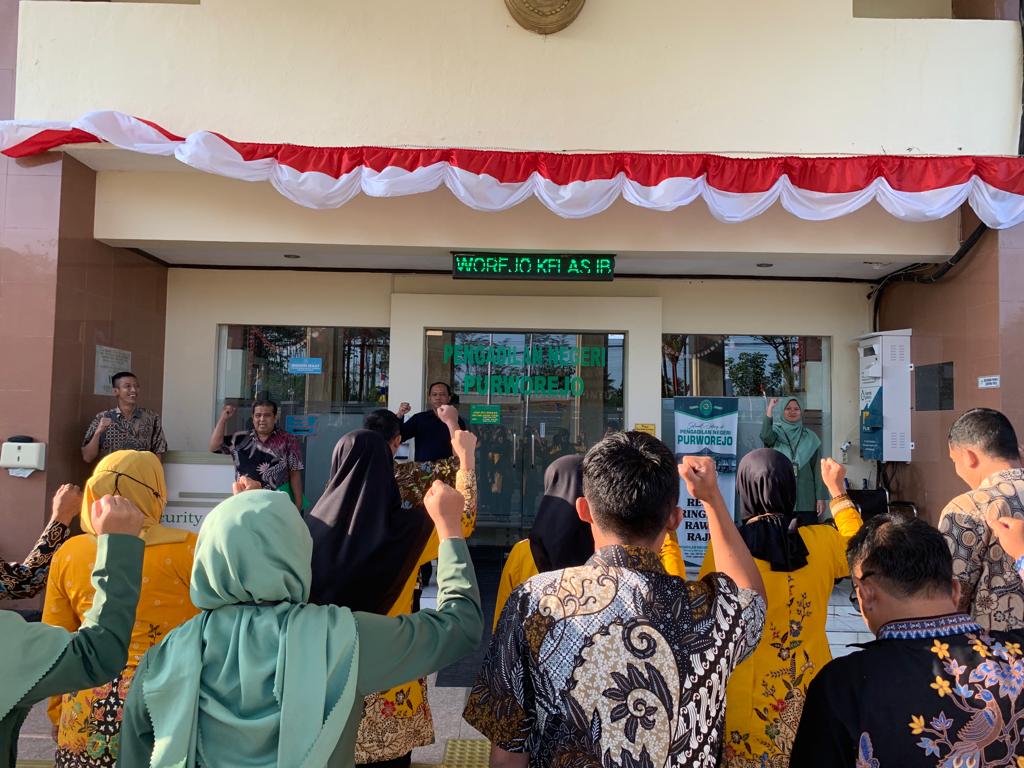Purworejo – Jumat, 1 September 2023. Bertempat di halaman kantor Pengadilan Negeri Purworejo dilaksanakan apel sore yang dihadiri oleh seluruh Hakim, Pejabat Struktural, Pejabat Fungsional, Pelaksana dan PPNPN Pengadilan Negeri Purworejo tepat pukul 16.30 WIB.