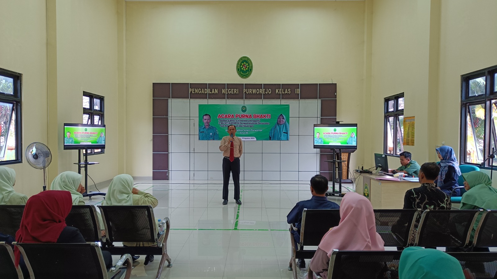 Purworejo - Sabtu, 19 Agustus 2023. Pengadilan Negeri Purworejo mengadakan Acara Purna Bhakti Bapak Supiyo, SH dan Ibu Siti Huroiroh dihadiri oleh seluruh Keluarga Besar Pengadilan Negeri Purworejo.