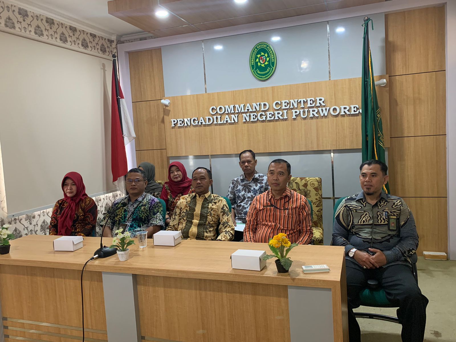 Purworejo – Kamis, 06 Juli 2023. Bertempat di Ruang Command Center Pengadilan Negeri Purworejo, Ketua Pengadilan Negeri Purworejo Bapak Purnomo Hadiyarto, S.H. didampingi Wakil Ketua Pengadilan Negeri Purworejo Bapak Santonius Tambunan, S.H., M.H., beserta Hakim, Panitera, Sekretaris dan Pejabat Struktural Pengadilan Negeri Purworejo mengikuti Pembinaan Bidang Teknis dan Administrasi Yudisial oleh Pimpinan Mahkamah Agung RI secara virtual.