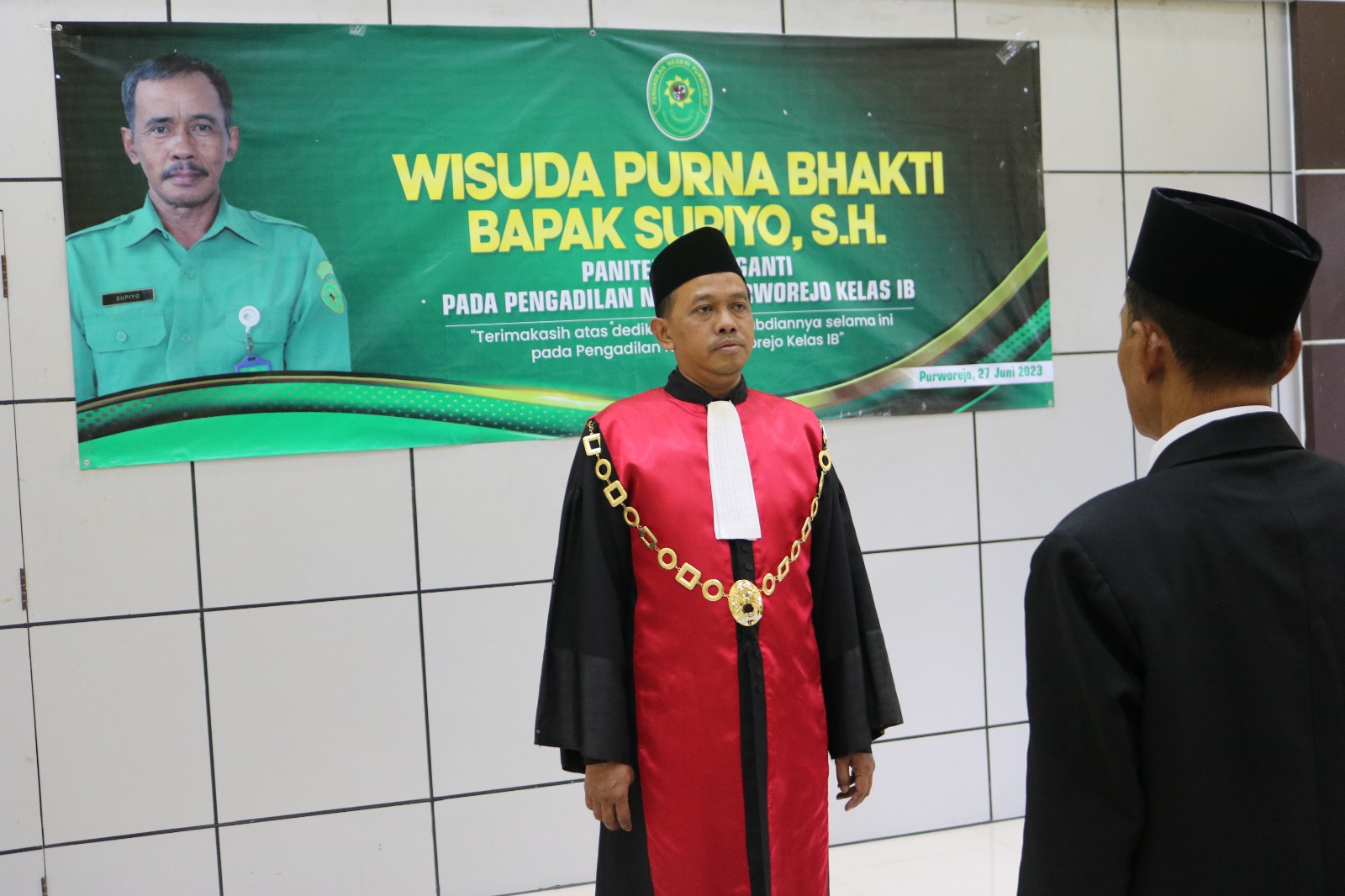 Purworejo – Jum’at, 27 Juni 2023. Bertempat di aula Pengadilan Negeri Purworejo dilaksanakan Wisuda Purna Bhakti Bapak Supiyo, S.H. Panitera Pengganti Pengadilan Negeri Purworejo. Wisuda Purna Bhakti dilakukan langsung oleh Ketua Pengadilan Negeri Purworejo Bapak Purnomo Hadiyarto, S.H. dan dikuti oleh seluruh Keluarga Besar Pengadilan Negeri Purworejo.