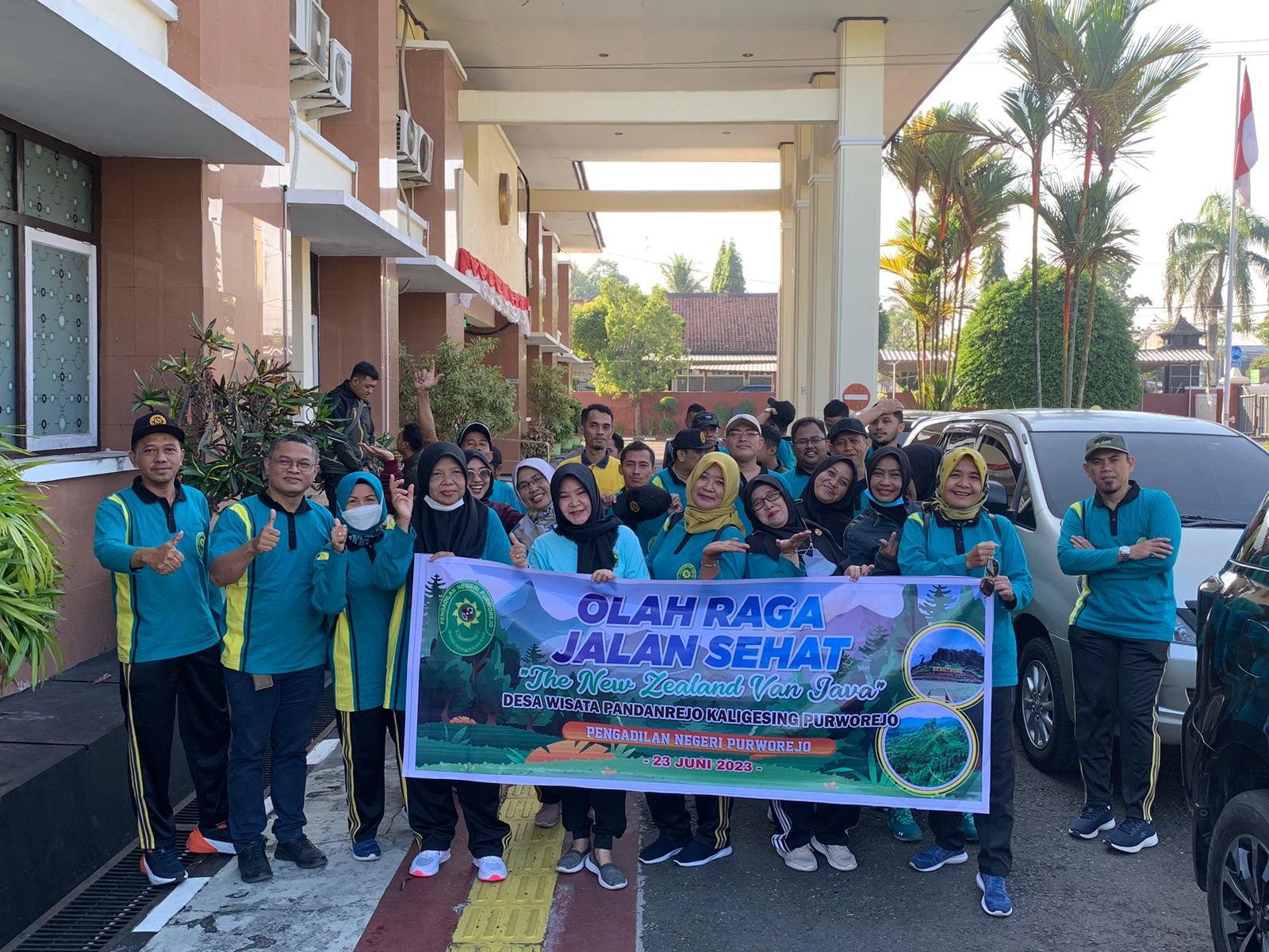 Purworejo – Jumat, 23 Juni 2023. Pengadilan Negeri Purworejo melakukan olahraga Bersama jalan sehat di Desa Wisata Pandanrejo, Kaligiesing, Purworejo. Kegiatan ini diikuti oleh seluruh keluarga besar Pengadilan Negeri Purworejo. Rombongan berkumpul di halaman depan kantor Pengadilan Negeri Purworejo pukul 07.15, sebelum berangkat rombongan berdoa Bersama yang dipimpin oleh Panitera Pengadilan Negeri Purworejo, Bapak Syahmisar, S.H., M.H. agar diberikan keselamatan di perjalanan hingga sampai ke tempat tujuan dan kembali ke kantor.
