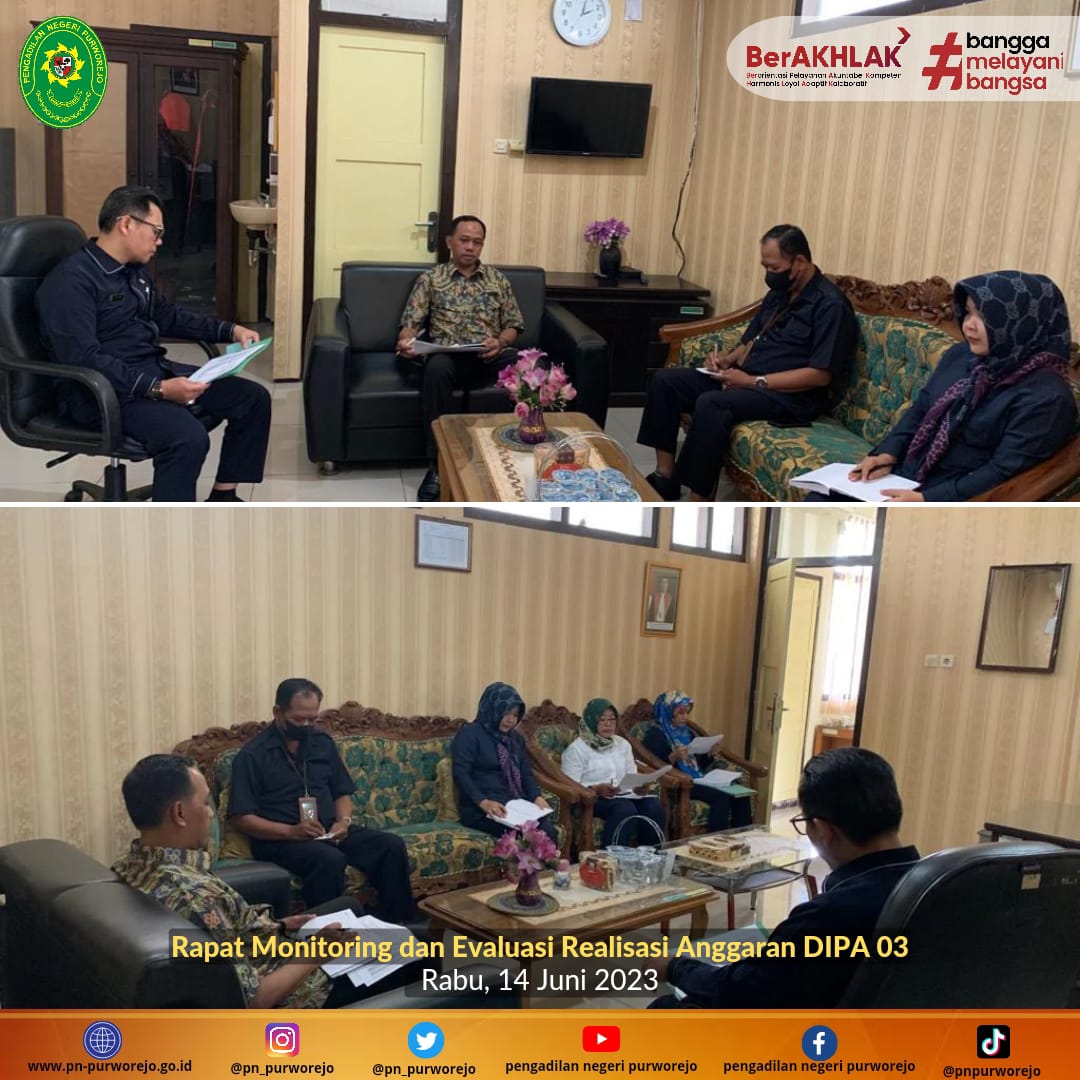 Rapat monitoring dan evaluasi realisasi anggaran DIPA 03 dipimpin oleh Ketua Pengadilan Negeri Purworejo Bapak Purnomo Hadiyarto, S.H.