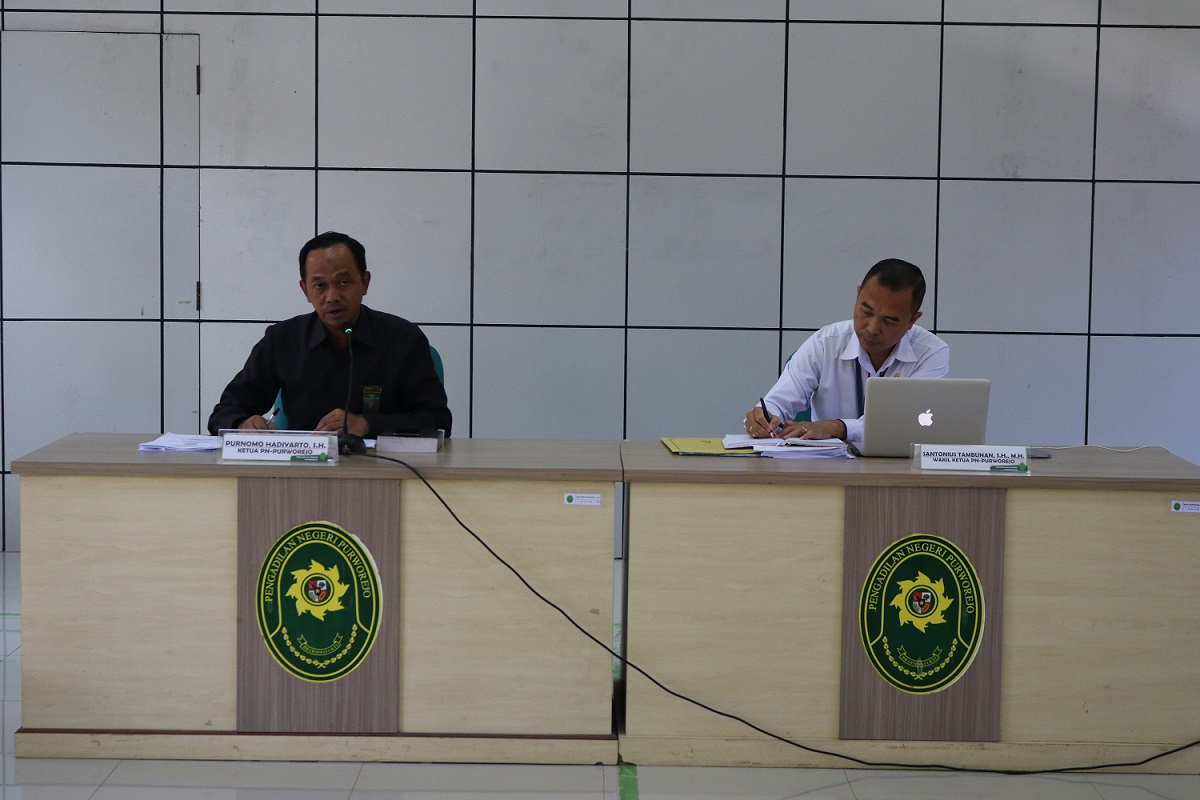 Hakim Tinggi Pengawas Daerah Pengadilan Tinggi Semarang Bapak Suwisnu, S.H., M.H, Bapak Bambang Utomo, S.H. dan Bapak Mohammad Sukri, S.H. didampingi Bapak Sumtro serta Bapak Rohop Ogest Soritua Sinaga, S.H. kunjungan kerja di Pengadilan Negeri Purworejo pada hari Rabu, 15 Maret 2023, dengan agenda melaksanakan Pembinaan dan Pengawasan kepada seluruh jajaran di Pengadilan Negeri Purworejo. Pembinaan dan pengawasan tersebut merupakan tugas yang diemban oleh Pengadilan Tinggi Semarang sebagai kawal depan Mahkamah Agung RI, agar dalam pelaksanan tugas pokok dan fungsi dapat dilakukan sebaik-baiknya dalam memberikan pelayanan prima kepada masyarakat dan mencegah terjadinya penyimpangan atau perbuatan yang tidak terpuji sehingga terciptanya misi Pengadilan Negeri Purworejo diantaranya menjaga kemandirian Pengadilan Negeri Purworejo, memberikan pelayanan hukum yang berkeadilan kepada para pencari keadilan, meningkatkan kualitas kepemimpinan di Pengadilan Negeri Purworejo, serta meningkatkan kredibilitas dan transparansi di Pengadilan negeri Purworejo.