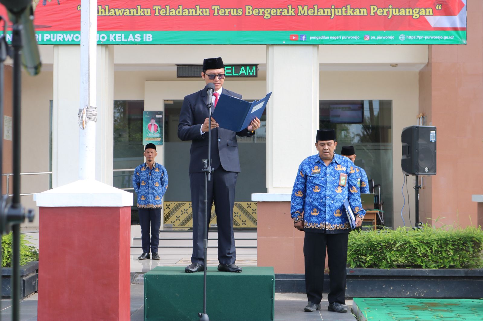 Purworejo - Senin, 10 November 2025. Pengadilan Negeri Purworejo melaksanakan Upacara memperingati Hari Pahlawan Nasional 10 November 2025 bertempat di Halaman Depan Kantor Pengadilan Negeri Purworejo. Kegiatan ini dipimpin oleh Wakil Ketua Pengadilan Negeri Purworejo Bapak Hernawan, S.H., M.H. dan diikuti oleh seluruh Keluarga Besar Pengadilan Negeri Purworejo.