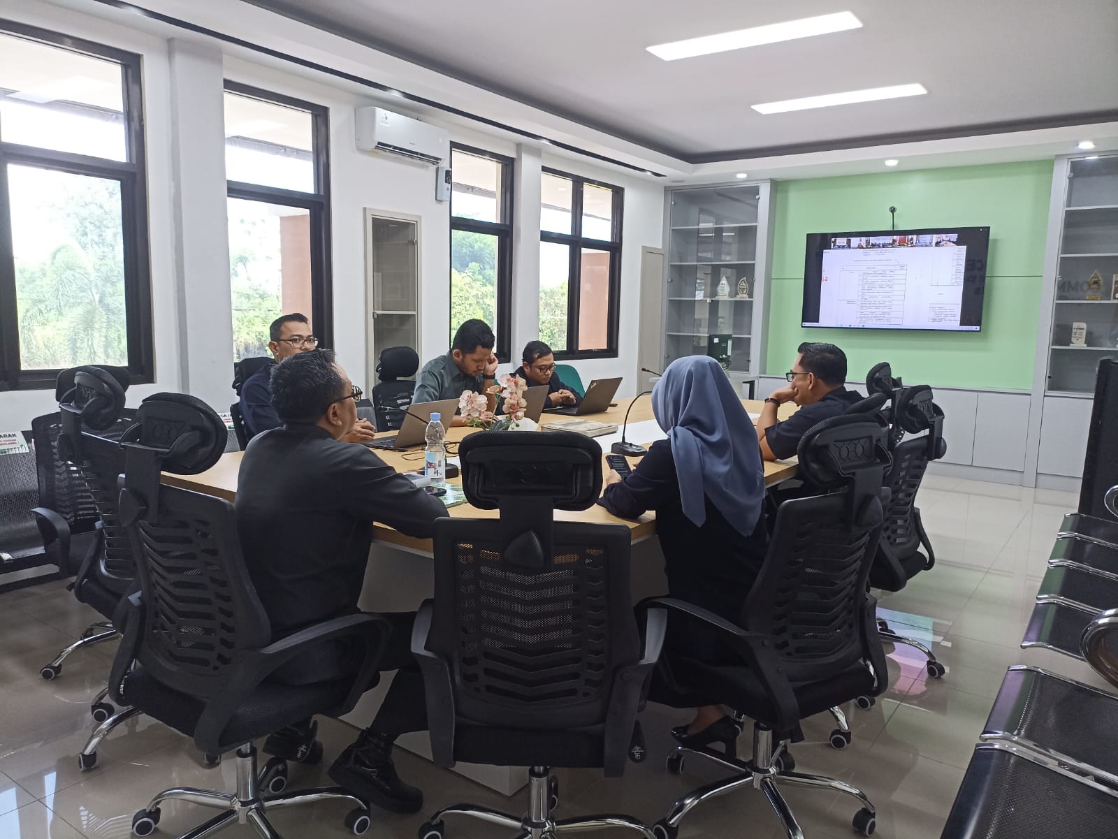 Purworejo - Kamis, 16 Oktober 2025. Sekretaris Pengadilan Negeri Purworejo Ibu Puspita Primavita, S.Kom. didampingi Kepala Sub Bagian Umum dan Keuangan serta jajarannya mengikuti Sosialisasi Fitur Standarisasi dan Evaluasi Pengadaan Menu Pengadaan Barang pada Aplikasi e-Sadewa secara daring bertempat di ruang kerja Sekretaris Pengadilan Negeri Purworejo.