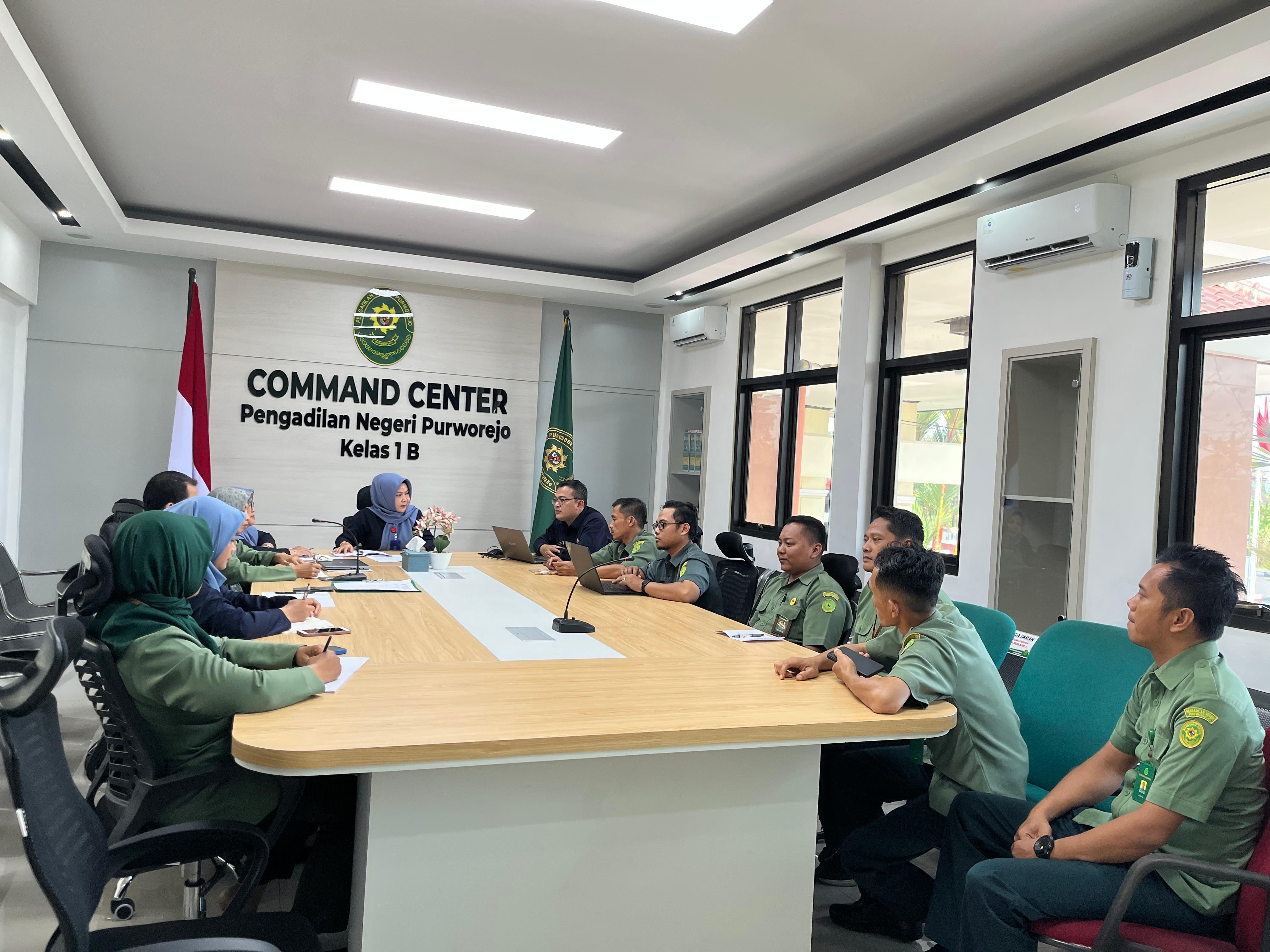 Purworejo - Selasa, 14 Oktober 2025. Bertempat di Ruang Command Center Pengadilan Negeri Purworejo mengikuti Sosialisasi dan Implementasi Sistem Akuntabilitas Kinerja Instansi Pemerintah (SAKIP) di Lingkungan Peradilan Umum secara daring bertempat di Command Center Pengadilan Negeri Purworejo.