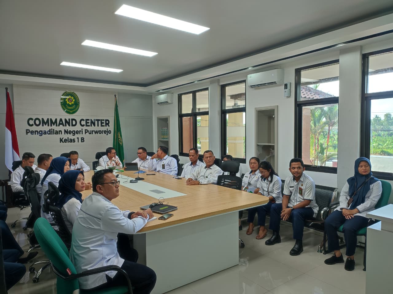 Purworejo - Senin, 13 Oktober 2025. Ketua Pengadilan Negeri Purworejo Bapak R. Heddy Bellyandi, S.H., M.H. didampingi Wakil Ketua, Para Hakim, Panitera, Sekretaris Pengadilan Negeri Purworejo beserta jajarannya mengikuti Pengawasan Daerah secara daring oleh Pengadilan Tinggi Jawa Tengah bertempat di Command Center Pengadilan Negeri Purworejo.