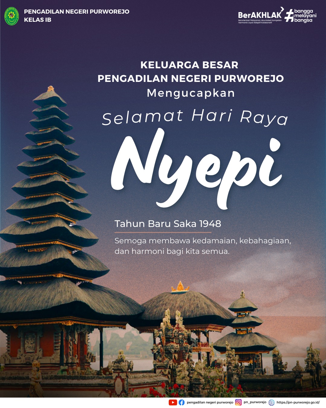 Keluarga Besar Pengadilan Negeri Purworejo mengucapkan Selamat Memperingati Hari Raya Nyepi Tahun Baru Saka 1948 Semoga membawa kedamaian, kebahagiaan, dan harmoni bagi kita semua.