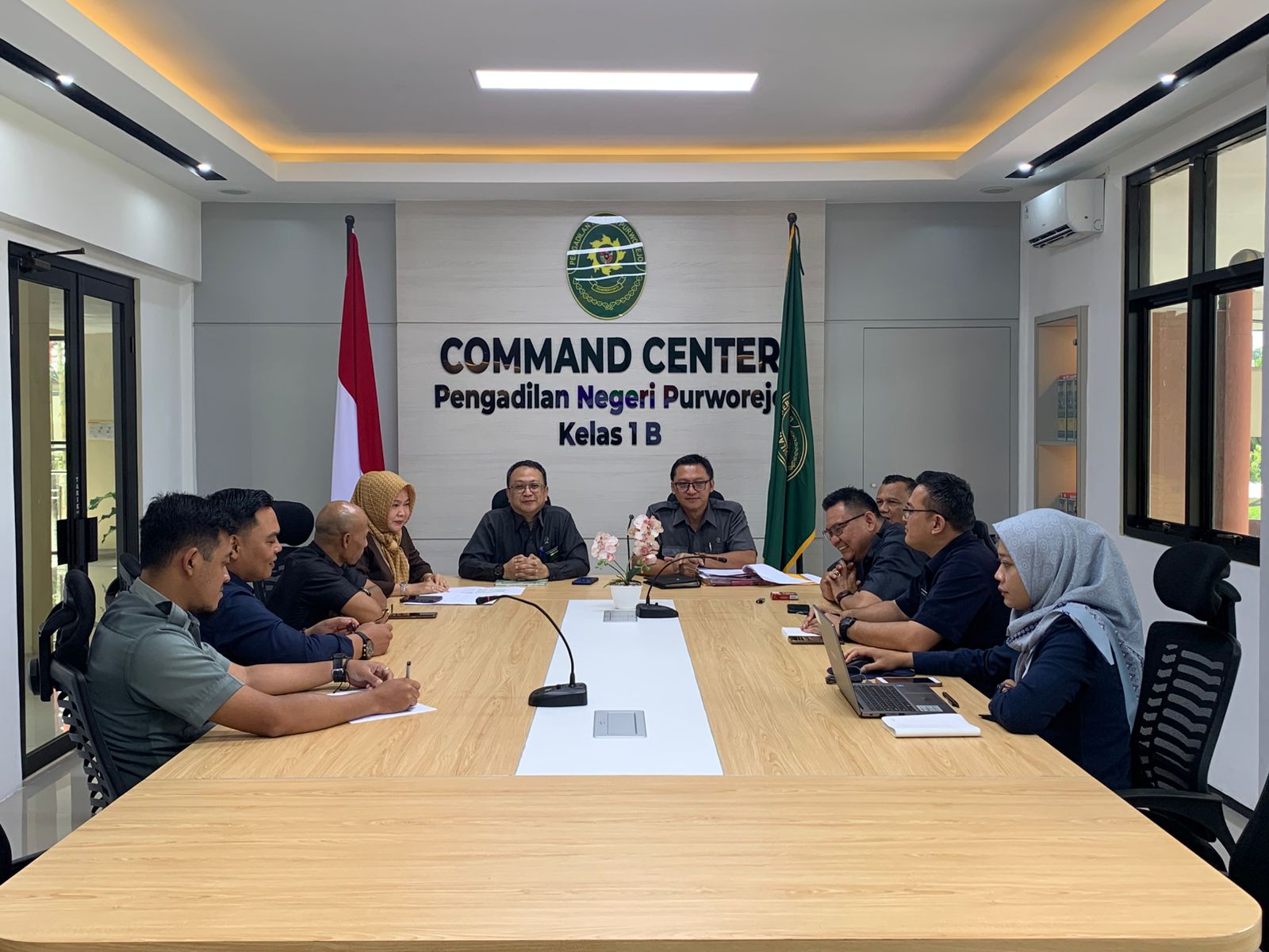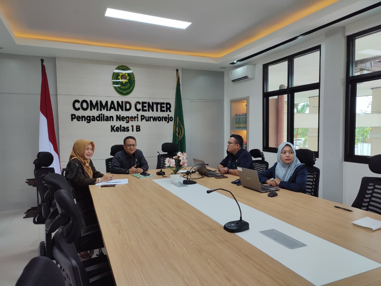 Purworejo - Rabu, 8 Oktober 2025. Ketua Pengadilan Negeri Purworejo Bapak R. Heddy Bellyandi, S.H., M.H. didampingi Sekretaris, Kepala Sub Bagian PTIP dan Kepala Sub Bagian Umum dan Keuangan Pengadilan Negeri Purworejo menghadiri Rapat Koordinasi Rencana Pembangunan Rumah Flat Hakim pada Peradilan Umum di Pulau Jawa Tengah secara daring bertempat di Command Center Pengadilan Negeri Purworejo.